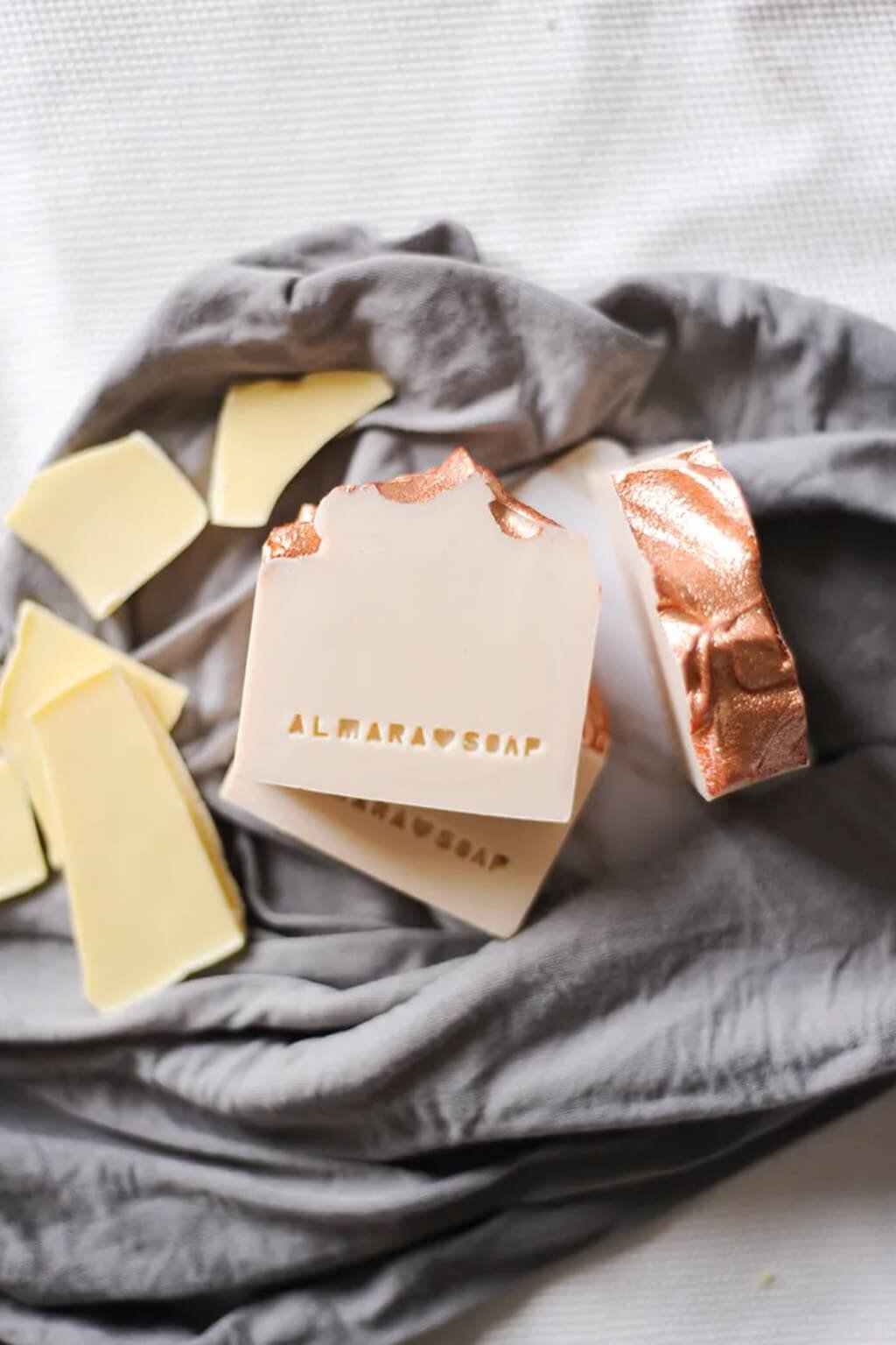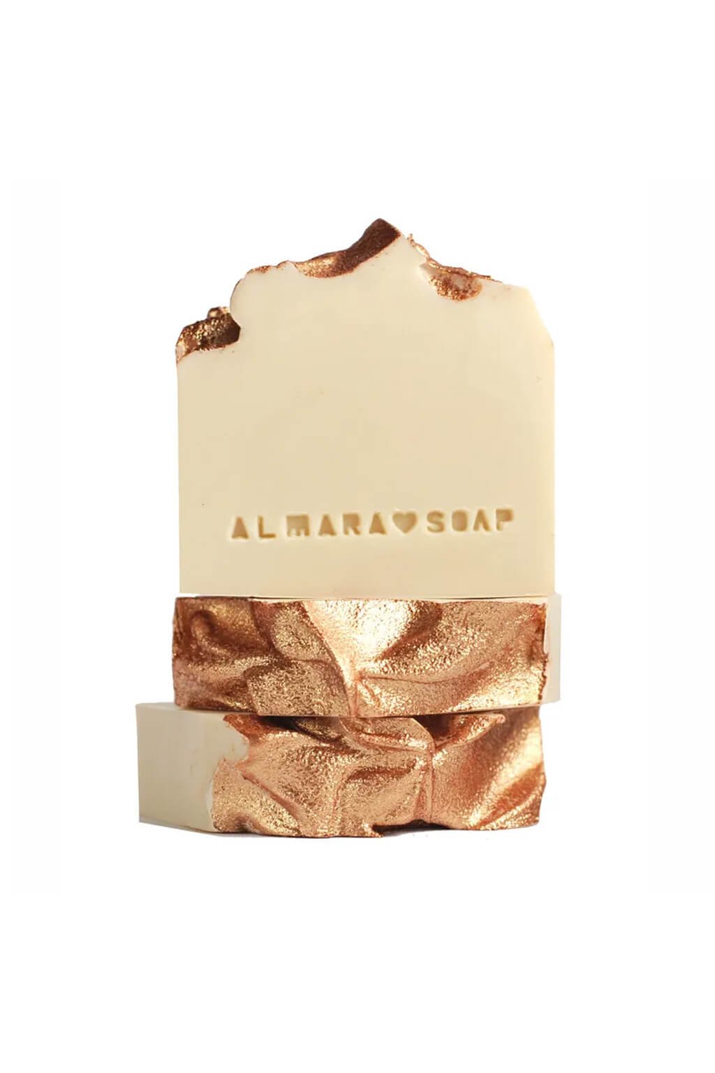 Dizajnové ručne vyrobené mydlo so sladkou vôňou bielej čokolády a mandlí.