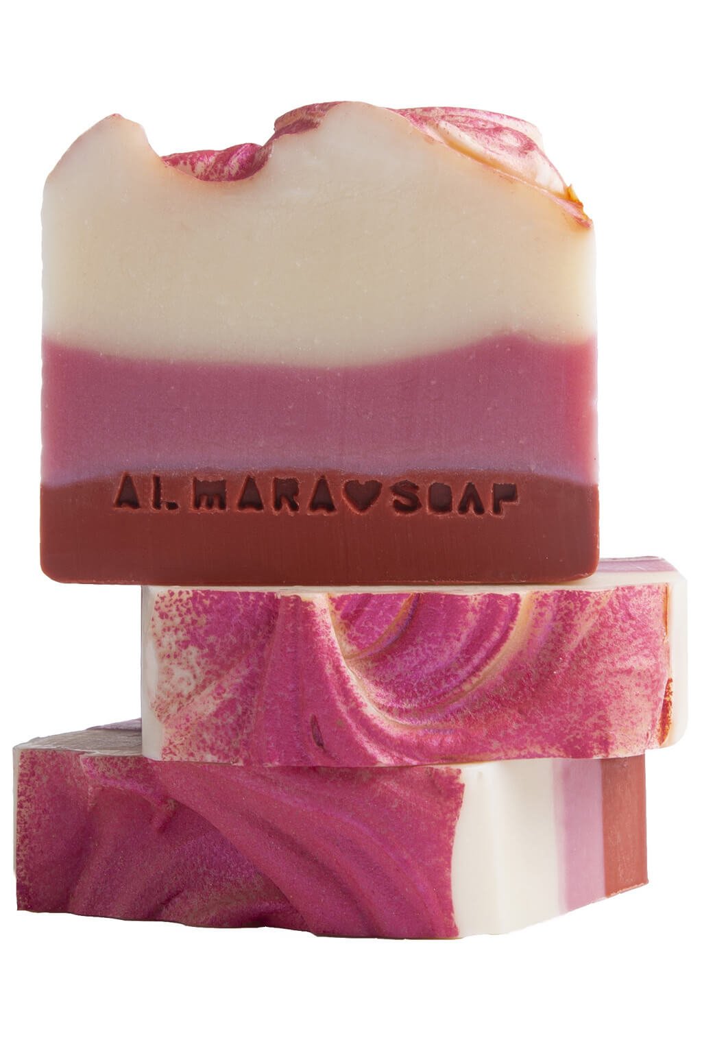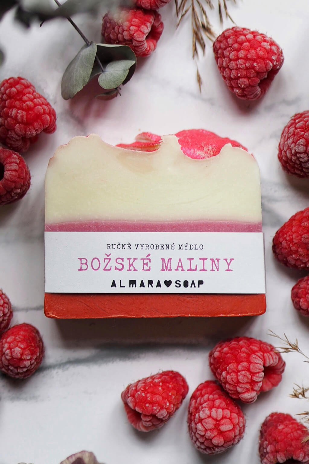 Dizajnové ručne vyrobené mydlo so sladkou vôňou malín a lesných plodov.