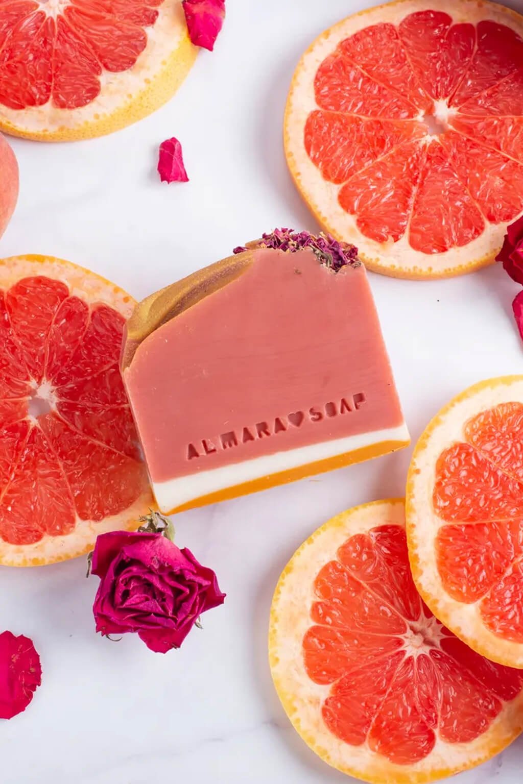 Dizajnové ručne vyrobené mydlo s výraznou vôňou grapefruitu.