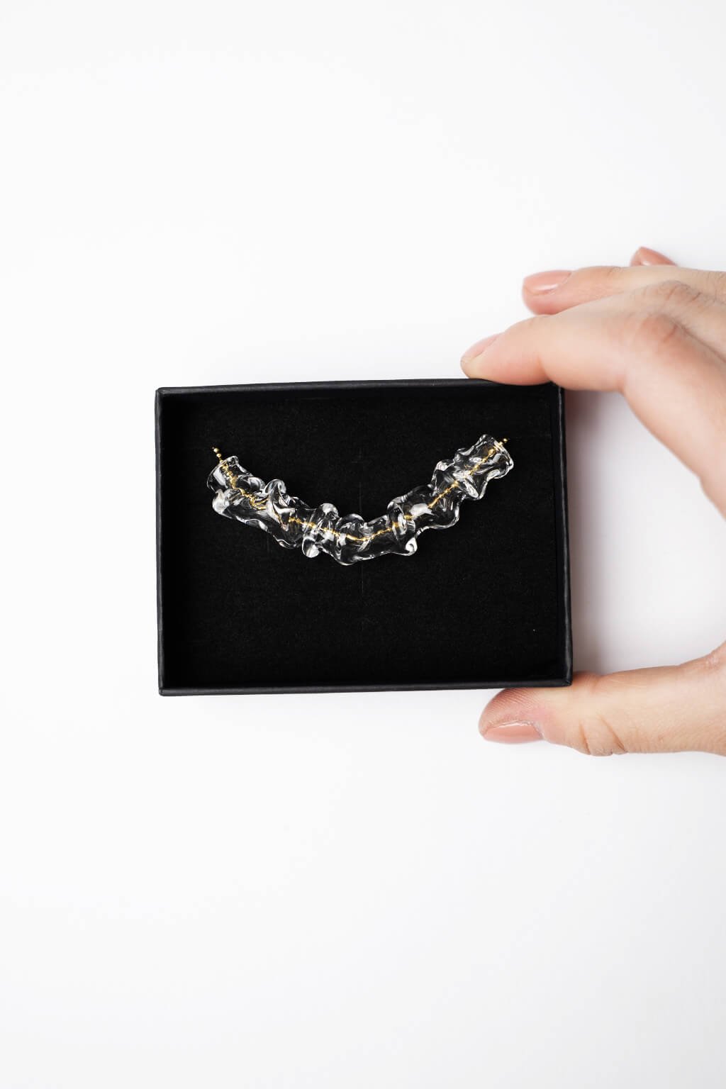 Tento autorský šperk vznikol ručne v libereckej dielni. Precízne krútené sklo vytvára dynamickú hru svetla a tieňa, zatiaľ čo chirurgická oceľ zaisťuje odolnosť aj pohodlie pri nosení. Náhrdelník je dostupný v pozlátenej aj postriebrenej variante, takže si ľahko vyberieš tú pravú pre seba.