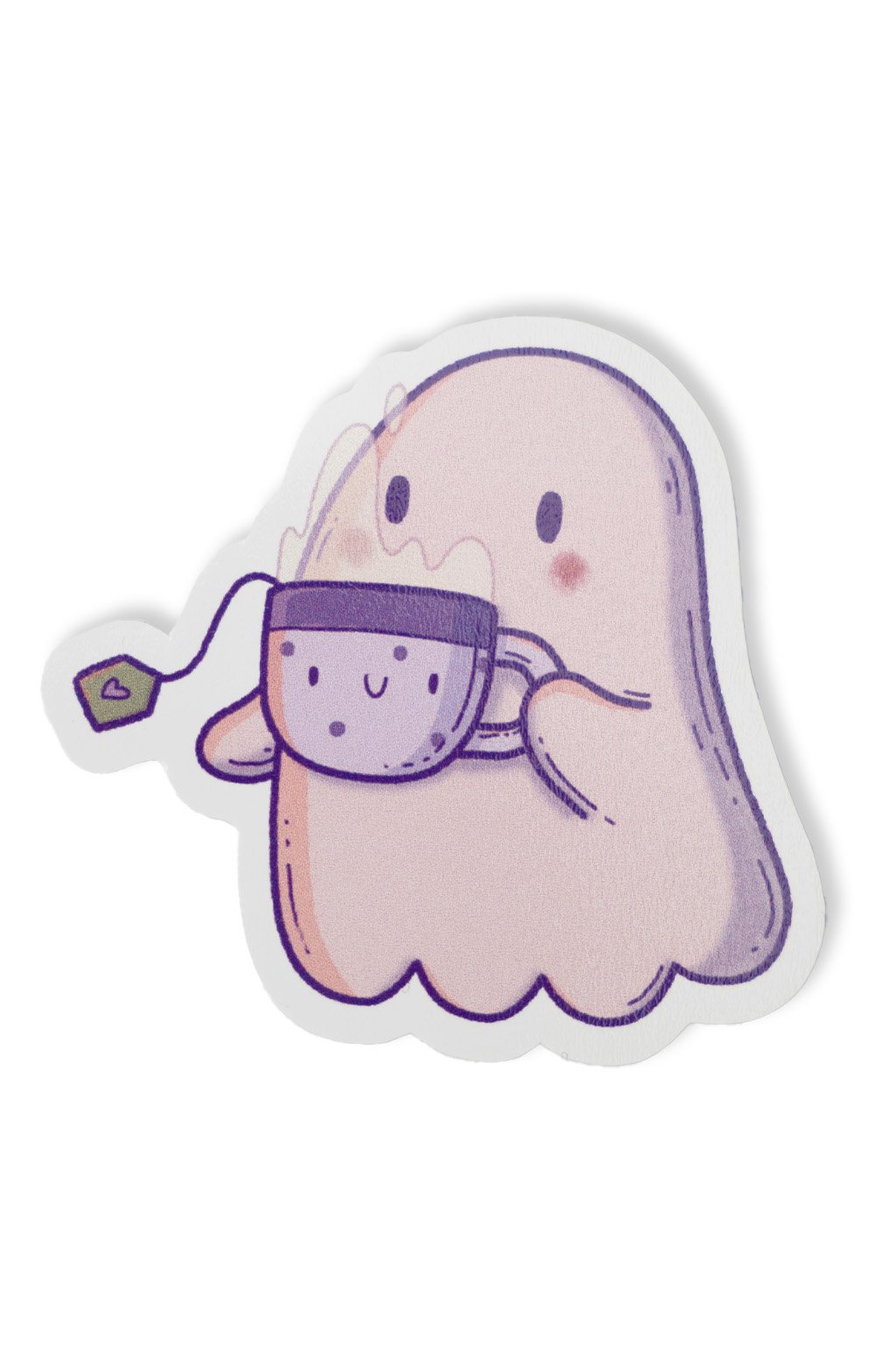 Nálepka s duchom, ktorý si nesie hrnček teplého čaju. Krásna ilustrácia od Kristíny Medkovej, ktorá ozdobí váš diár, zošit, alebo napríklad dosky.