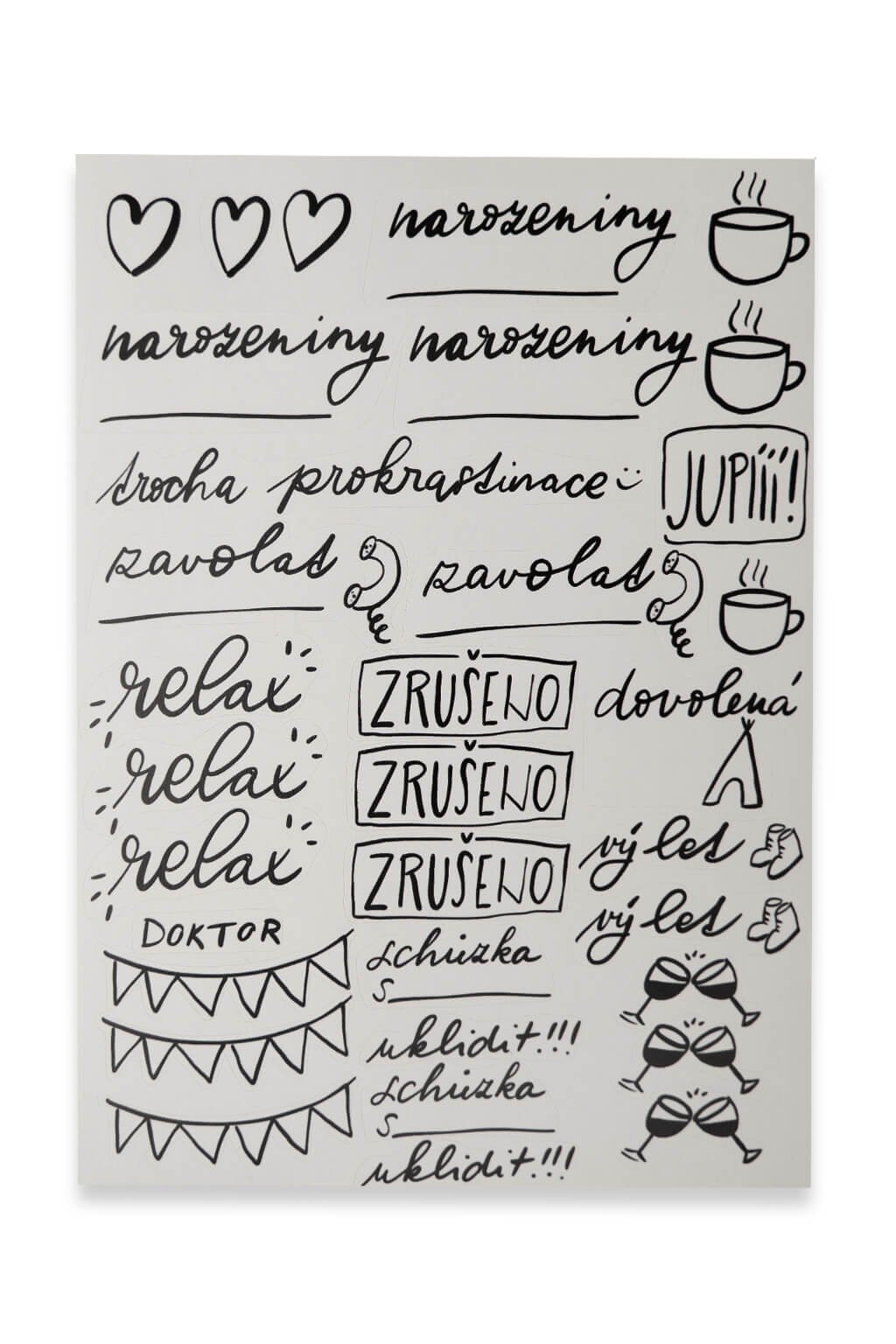 Nálepky do vášho diára zlepšia náladu a pripomenú dôležité udalosti. Ozdobte si svoj diár originálne a vytvorte si osobný štýl, ktorý vás poteší. Nálepky sú vo formáte A6 a predávajú sa po jednom hárku.