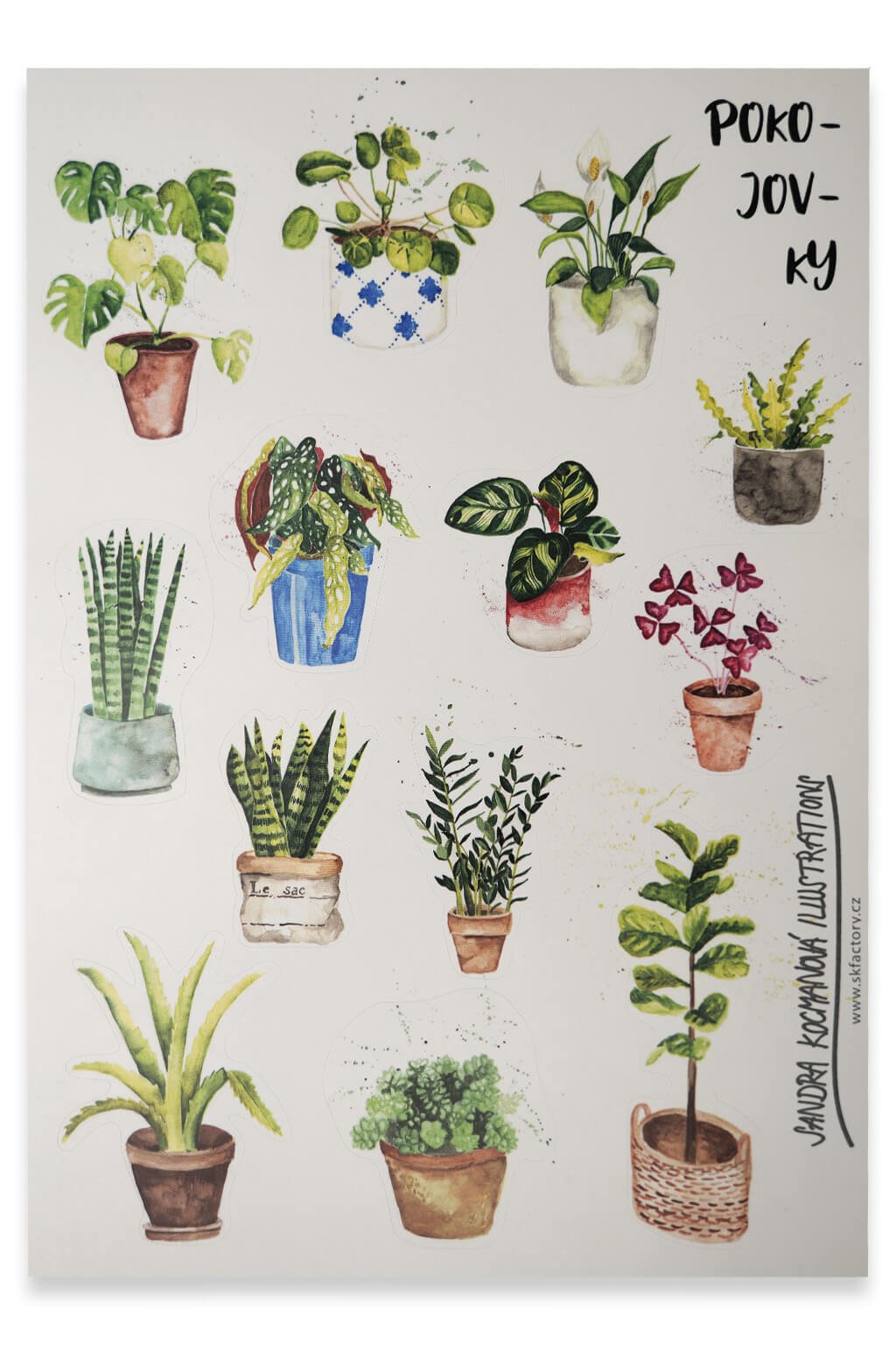 Pre všetkých milovníkov izbových rastlín máme krásne nálepky s motívmi izboviek, ktoré vytvorila talentovaná ilustrátorka Sandra Kocmanová.