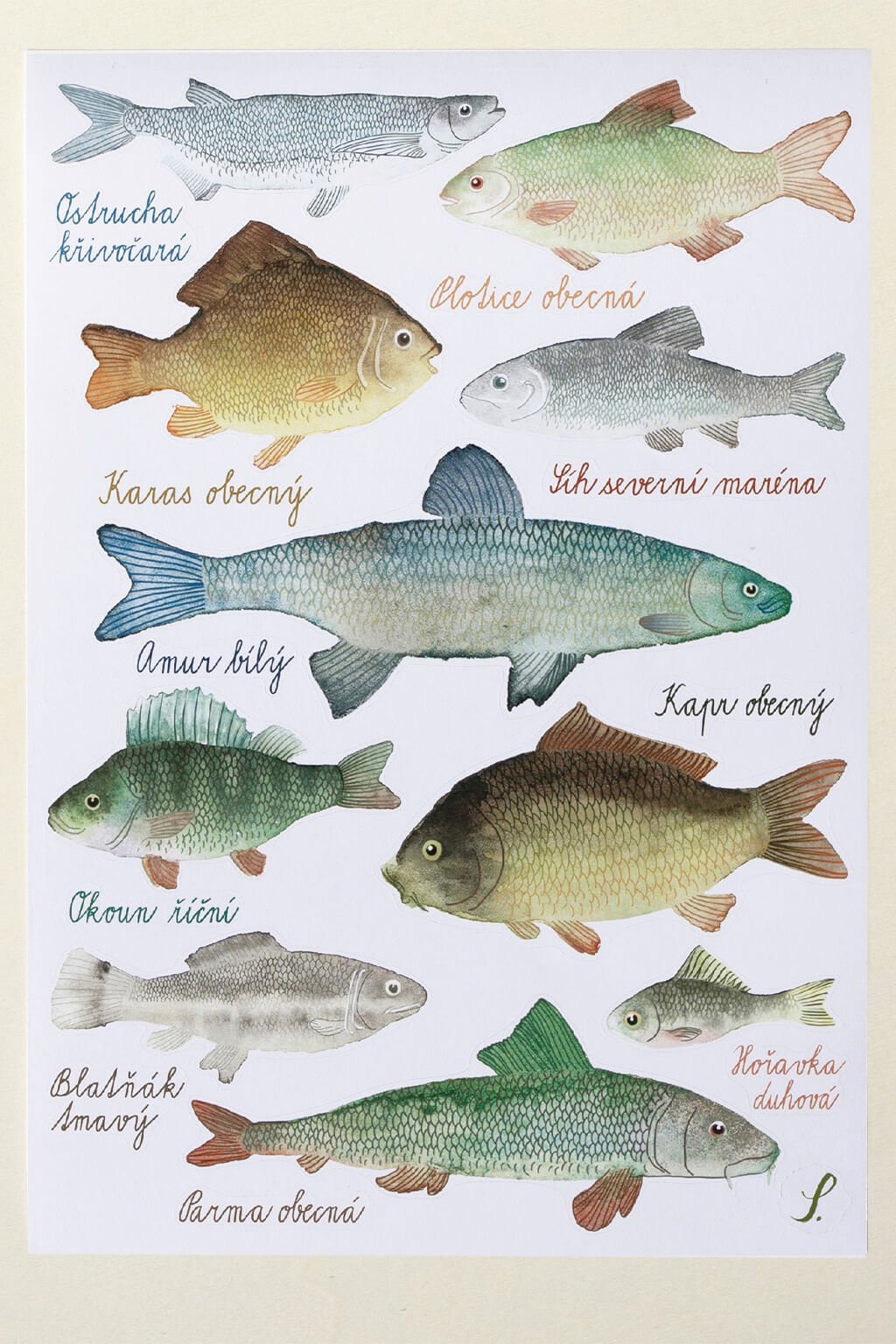 Veselé nálepky s motívmi rýb, maľované technikou akvarelu, sú dielom talentovanej výtvarníčky Soni Samlik.