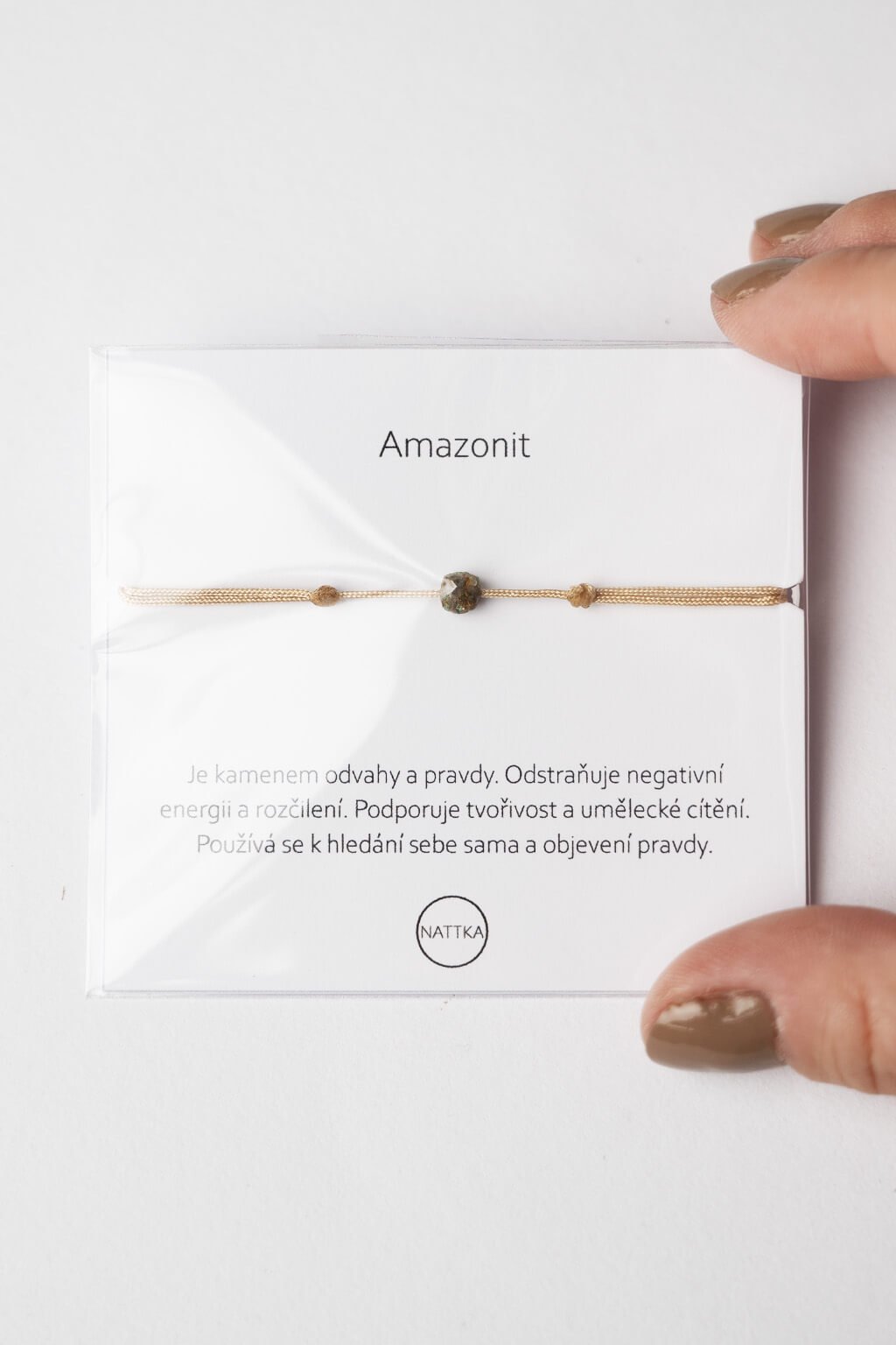 Amazonit je kameň pravdy a odvahy. Pomáha odstrániť a eliminovať negatívnu energiu. Jedná sa o kameň vhodný pre kreatívcov, pretože podporuje tvorivosť a umelecké cítenie. Je ideálnym partnerom pre hľadanie seba samého.
