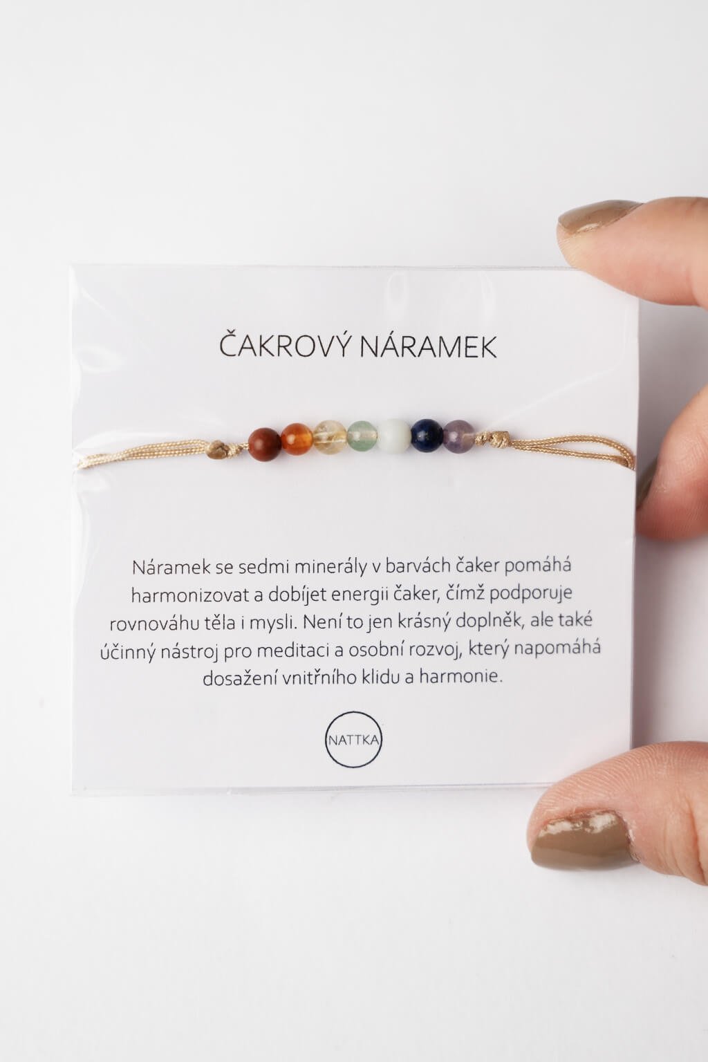Čakrový náramok je tvorený kameňmi, ktoré sú spojené s jednotlivými energetickými centrami v tele, nazývanými čakry. Pomáha harmonizovať a vyrovnávať energiu v tele, čím prispieva k lepšiemu fyzickému, emocionálnemu a duchovnému zdraviu. Nosenie takého náramku podporuje pocit vnútorného pokoja, rovnováhy a celkovej pohody. Navyše pomáha uvoľniť bloky v energetickom toku, čo vedie k lepšej životnej energii a vitalite.