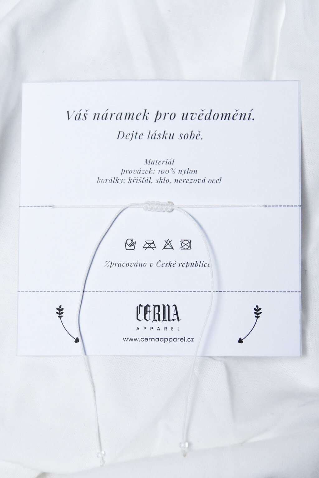 Náramok je dodávaný na papierovej kartičke a zabalený v celofánovom vrecúšku.