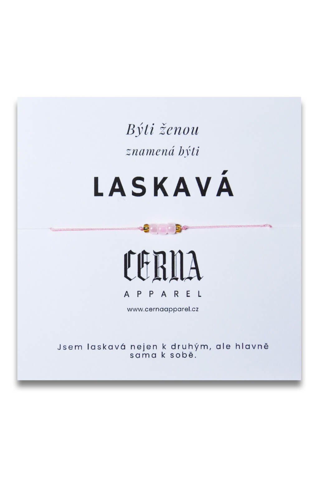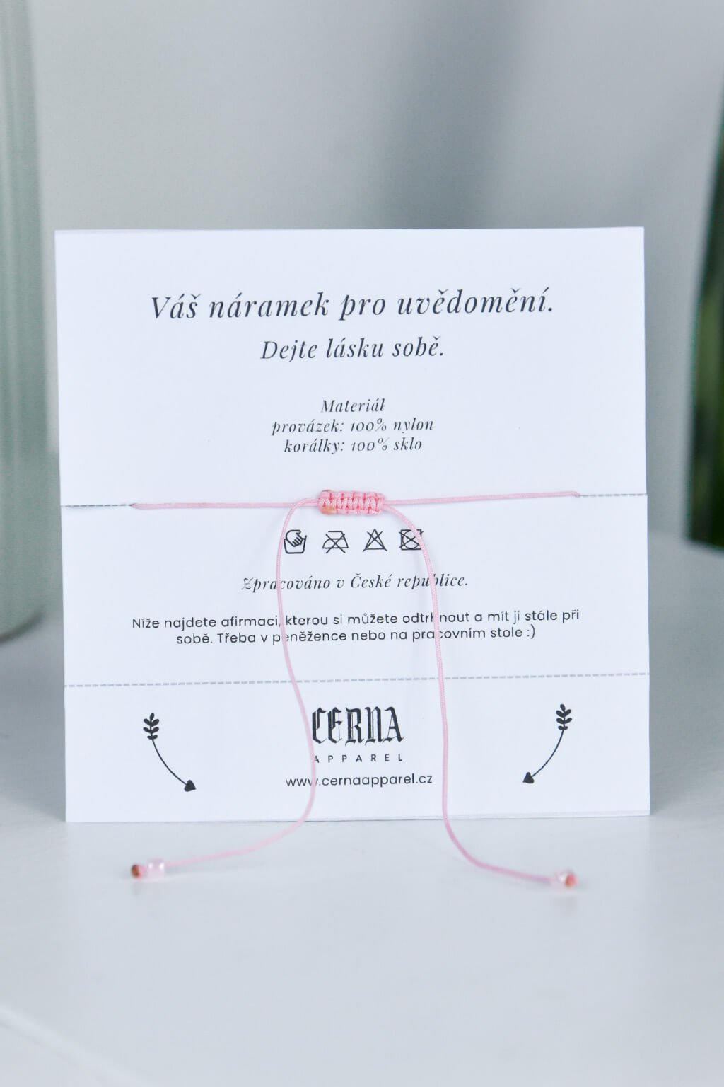 Náramok je dodávaný na papierovej kartičke, na ktorej je napísaná afirmácia. Tú si môžete odstrihnúť a nosiť ju stále pri sebe ako pripomienku vašej jedinečnosti.