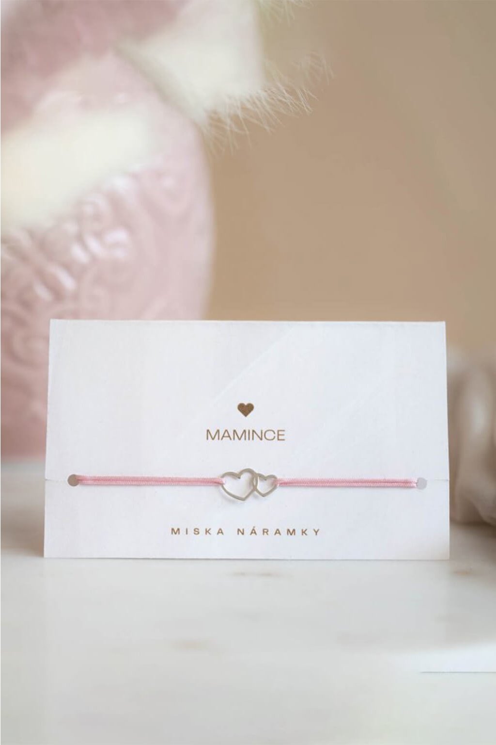 Náramok | Mamičke strieborný s ružovou šnúrkou