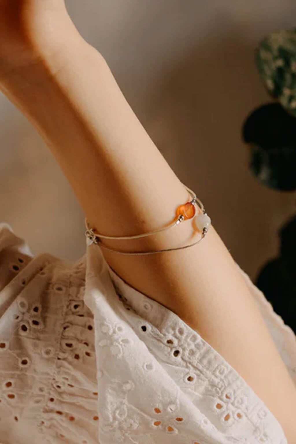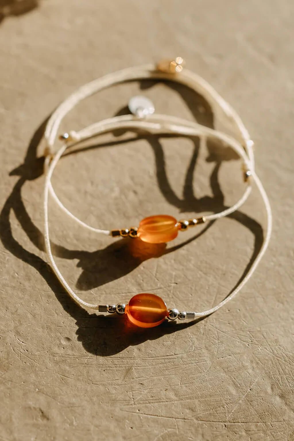 Originálny jemný šnúrkový náramok so žiarivo oranžovým karneolom vám prinesie radosť a lásku do každého dňa.