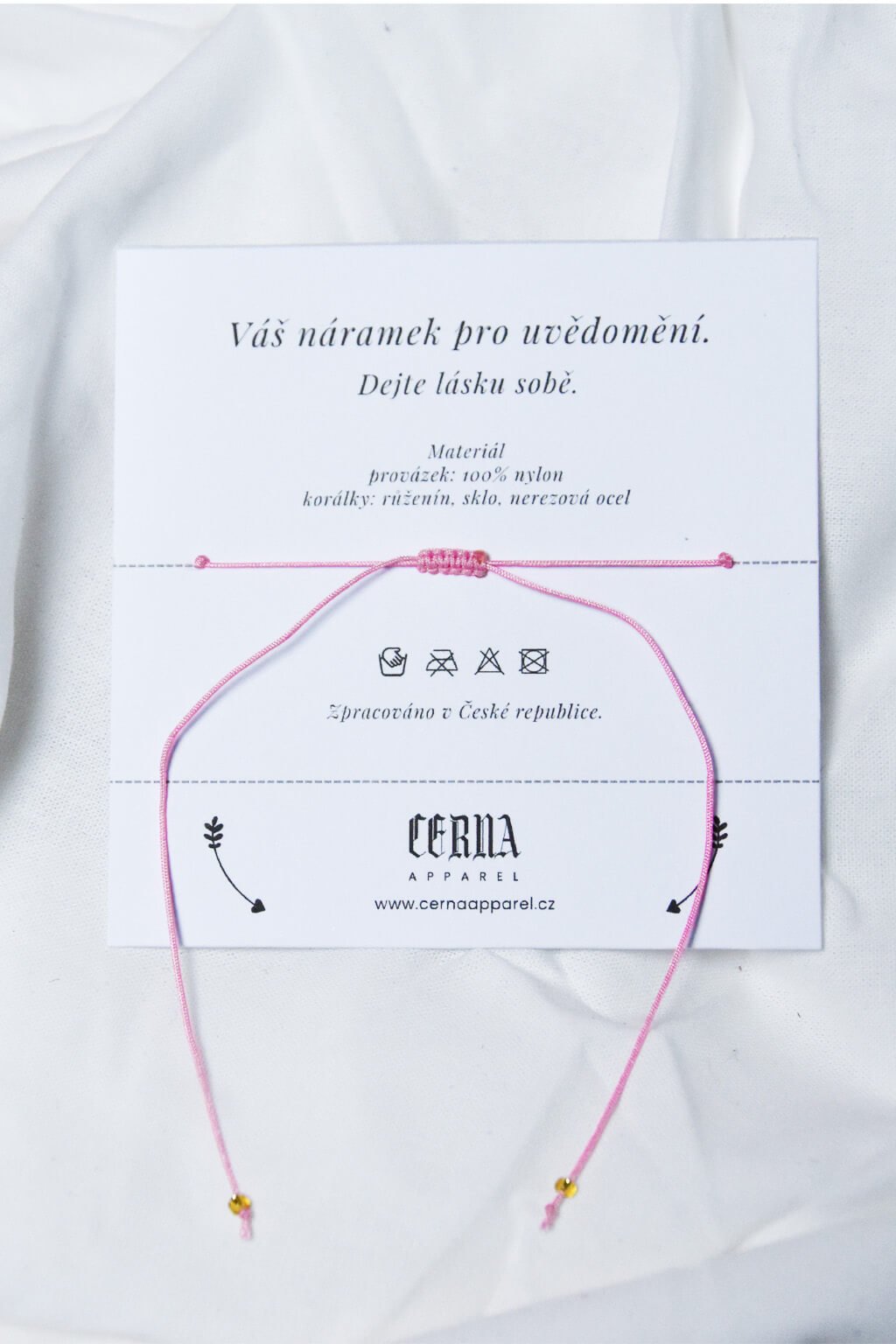 Náramok je dodávaný na papierovej kartičke a je zabalený v celofánovom vrecúšku.