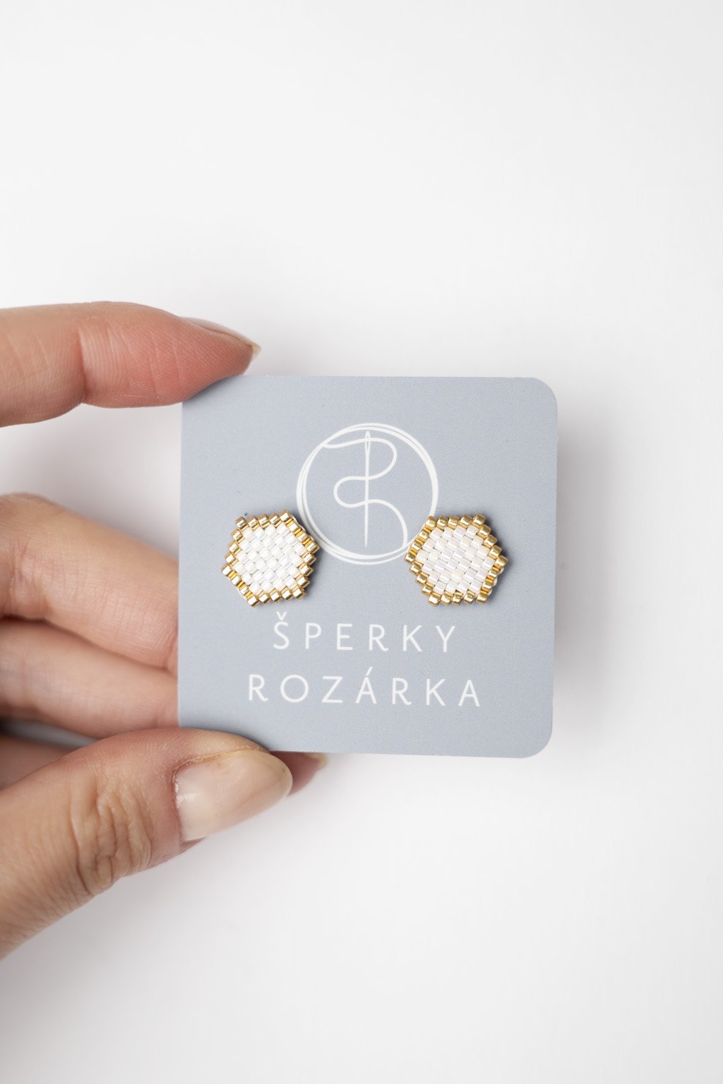 Korálkové biele náušnice so zlatým okrajom od značky Rozárka.