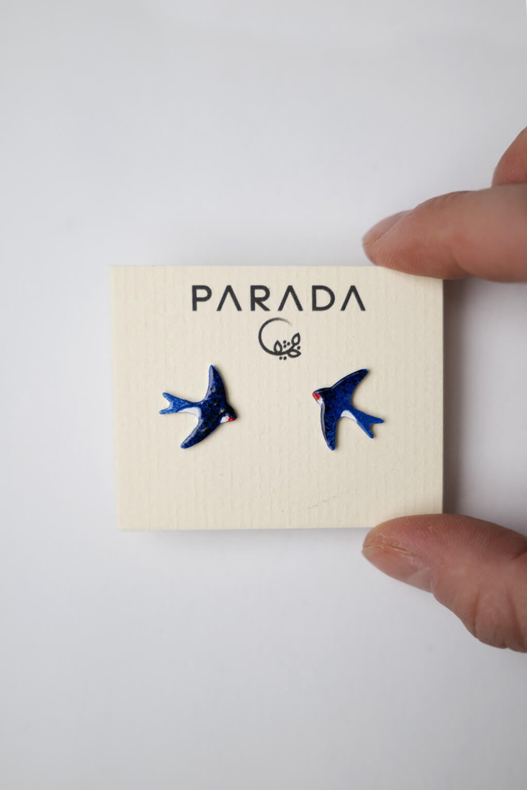 Krásne ručne maľované puzety s motívom lastovičiek sú zasadené do smaltovanej nehrdzavejúcej ocele. Ich jemný dizajn je ľahký a pohodlný, ideálny na každodenné nosenie. Puzeta je pevne pripevnená k základni pre trvalé spojenie a súčasťou sú zapínacie špuntíky.