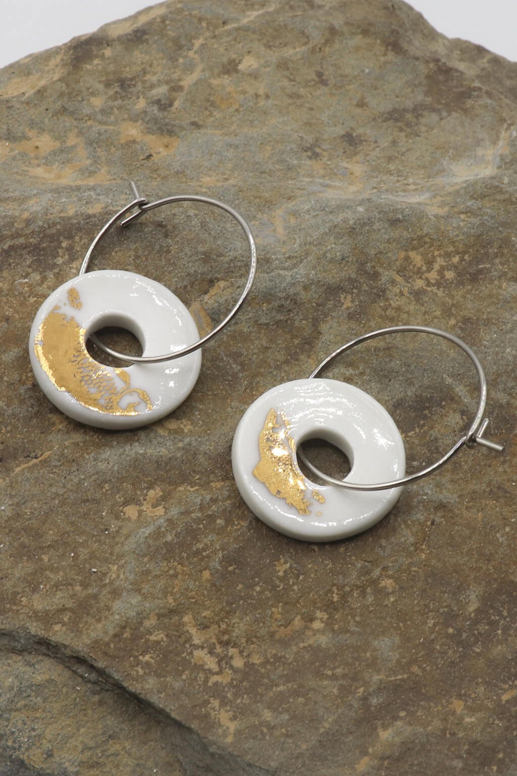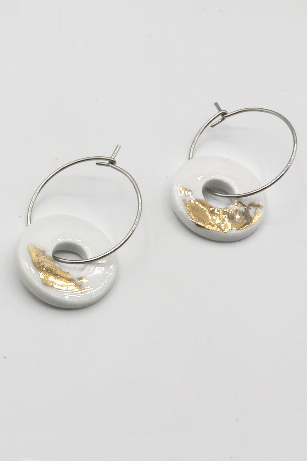 Porcelánové náušnice so zlatým motívom kaprov. Náušnice sú na krúžkoch z chirurgickej ocele v striebornom prevedení. Ideálna voľba pre citlivú pokožku.