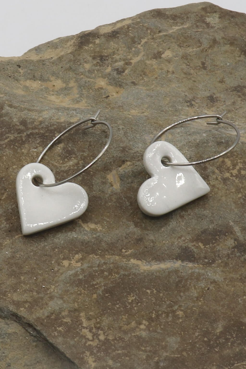 Porcelánové náušnice v tvare srdca. Náušnice sú na krúžkoch z chirurgickej ocele v striebornom prevedení. Ideálna voľba, ktorá je šetrná k citlivej pokožke.