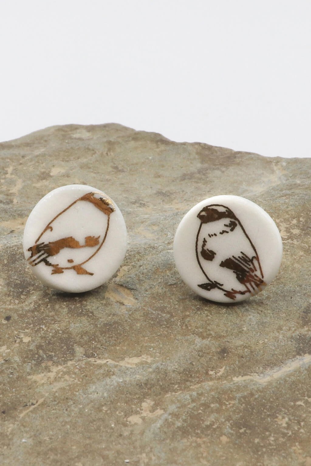 Porcelánové náušnice so zlatým motívom vtáčikov. Náušnice majú komponenty z chirurgickej ocele, a sú tak šetrné k citlivej pokožke.