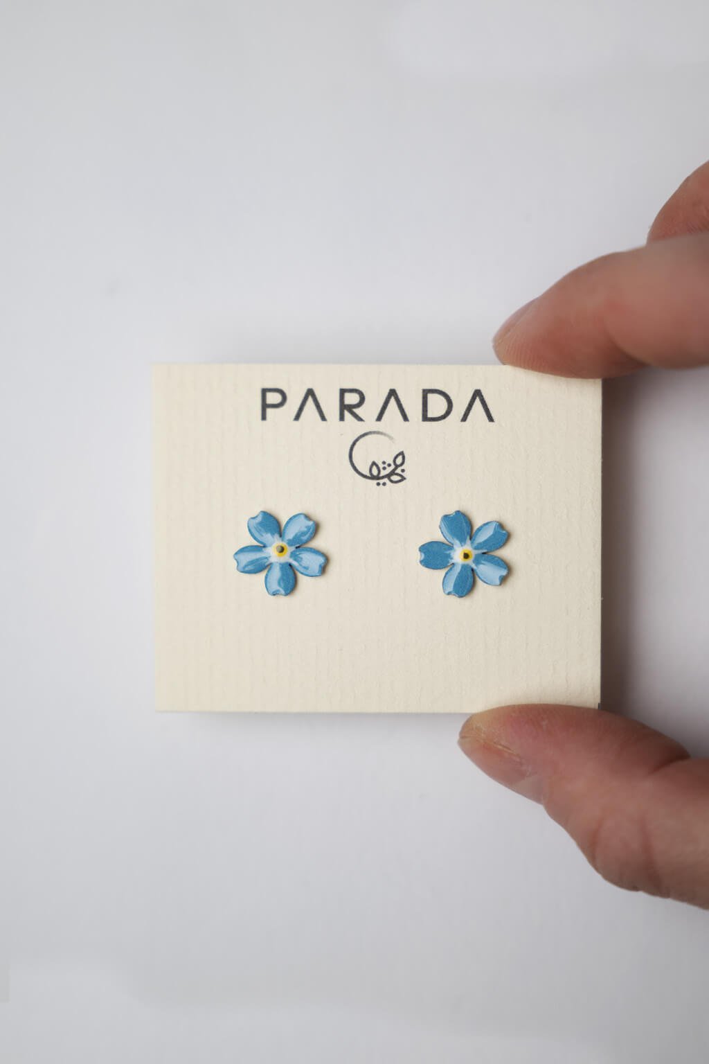Krásne ručne maľované puzety s motívom nezábudky sú zasadené do smaltovanej nehrdzavejúcej ocele. Ich jemný dizajn je ľahký a pohodlný, ideálny na každodenné nosenie. Puzeta je pevne pripevnená k základni pre trvalé spojenie a súčasťou sú zapínacie špuntíky.