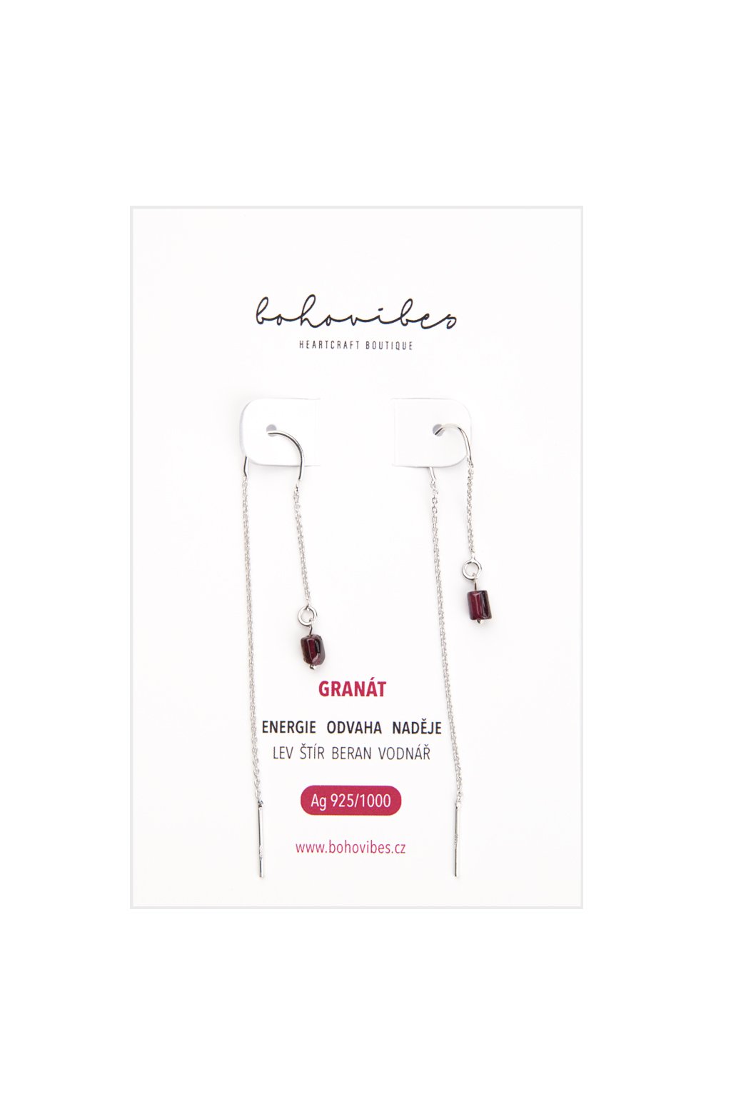 Náušnice z rhodiovaného striebra Ag 925 s granátom. Granát má silnú schopnosť dodávať energiu. Zvyšuje vitalitu a chuť do života.