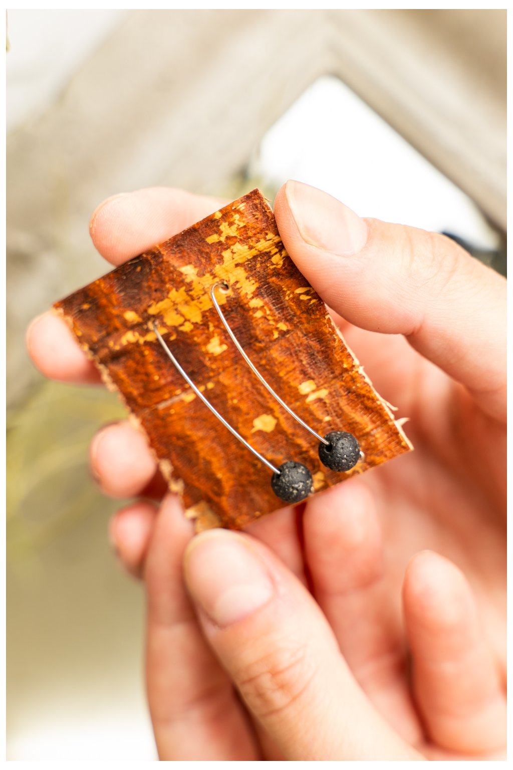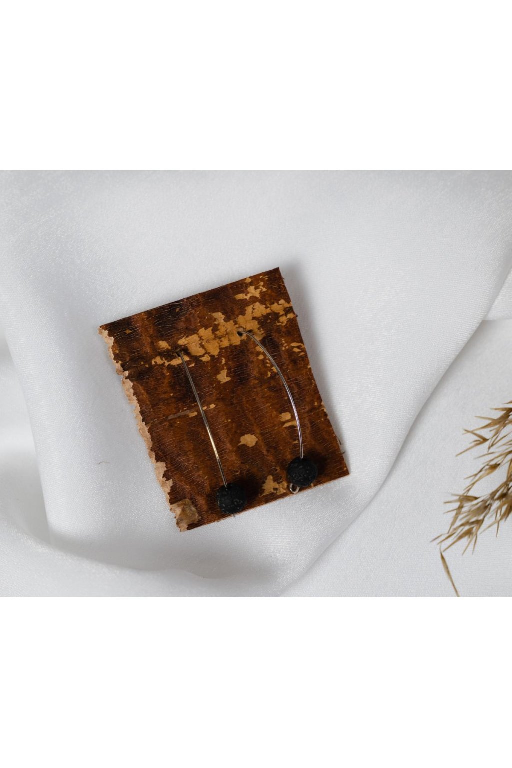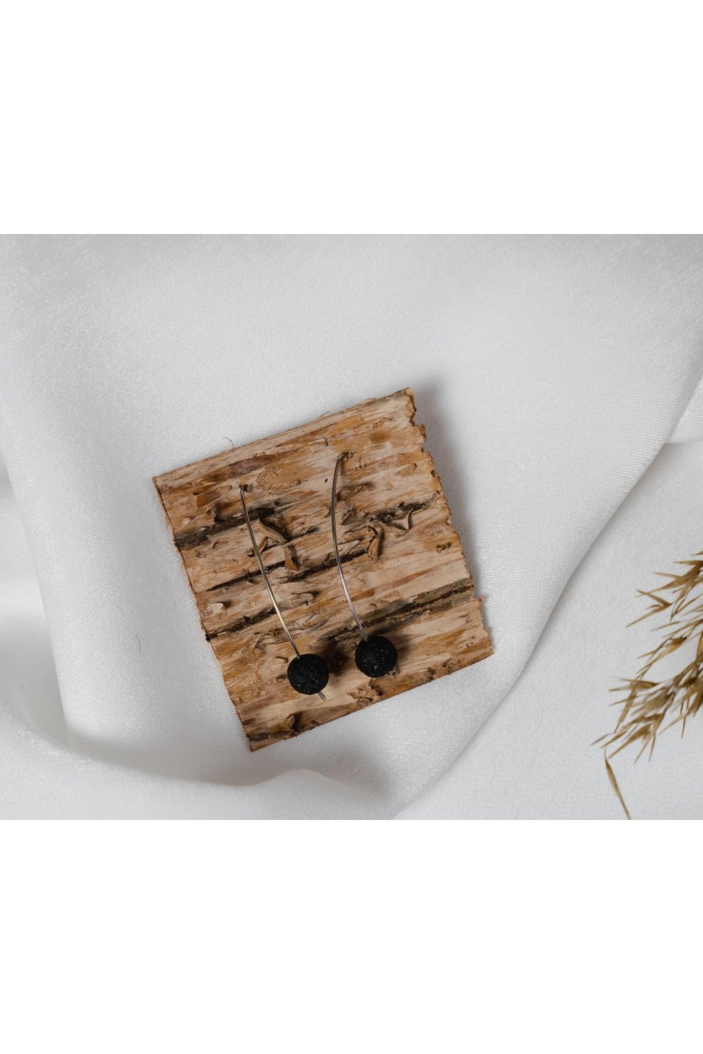 Minimalistické, hravé a estetické náušnice z autorskej tvorby Evy Kvasnicovej. Komponent do ucha je vyrobený z nerezového drôtika s lávovým kameňom. Šperky sú ručne tvorené
