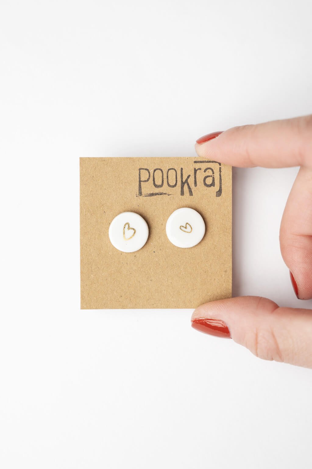 Porcelánové náušnice so zlatým motívom srdca a zapínaním z chirurgickej ocele, čo je ideálna voľba pre citlivú pokožku.