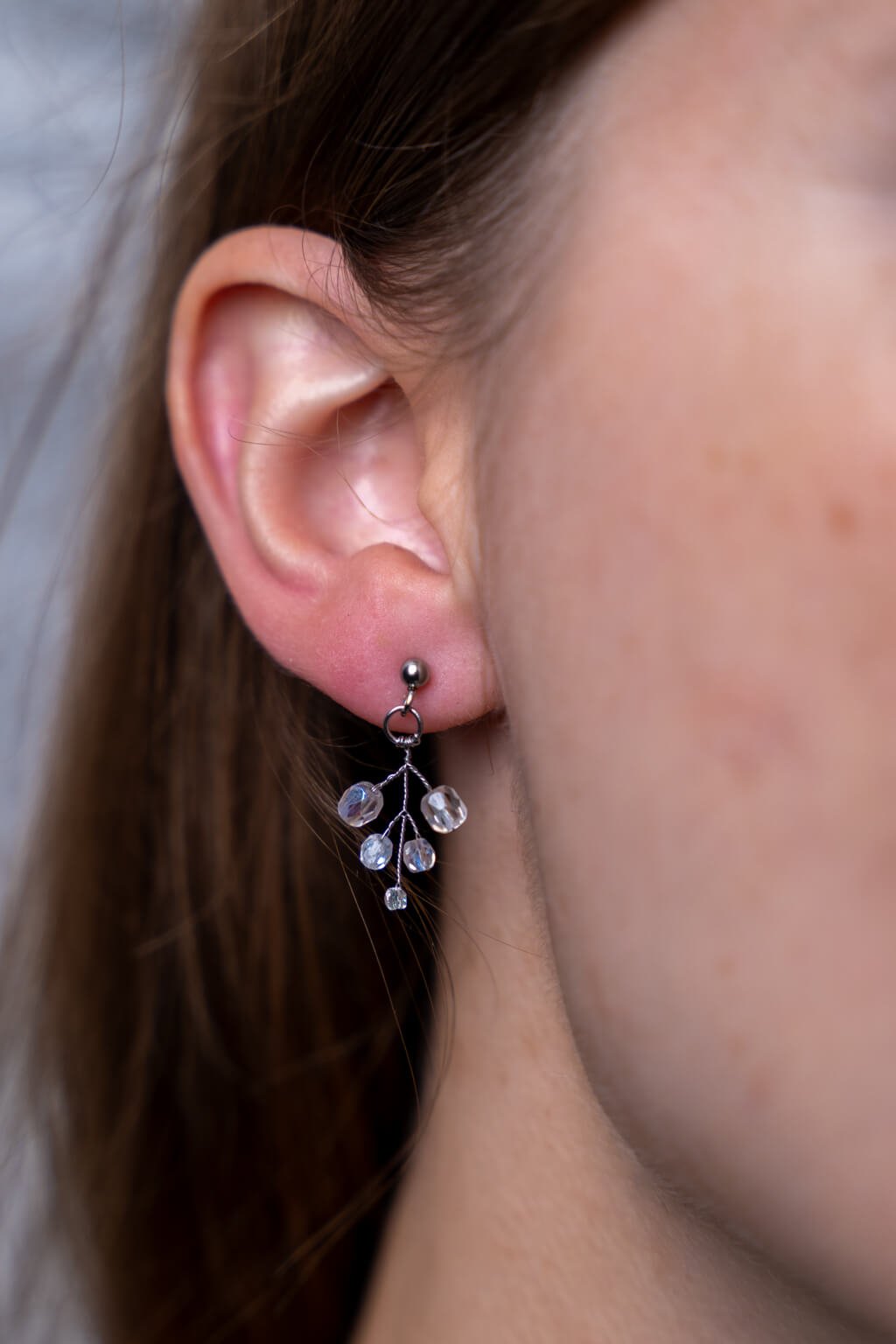 • Náušnice z drôtu z chirurgickej ocele a sklenených korálikov.