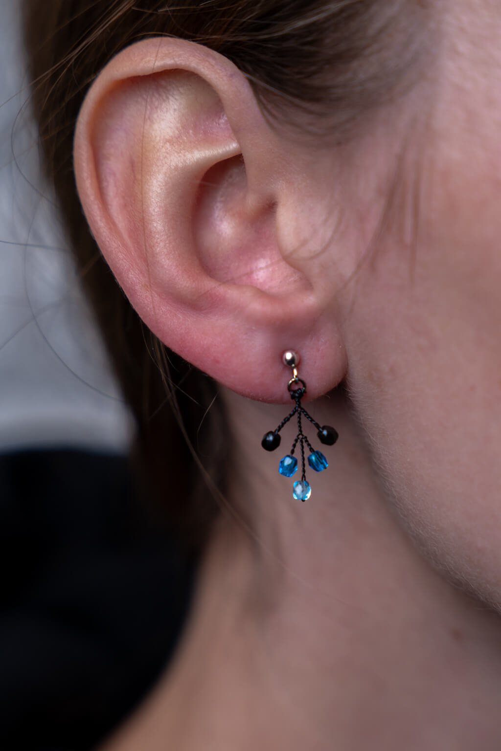 • Náušnice z drôtu z chirurgickej ocele a sklenených korálikov.