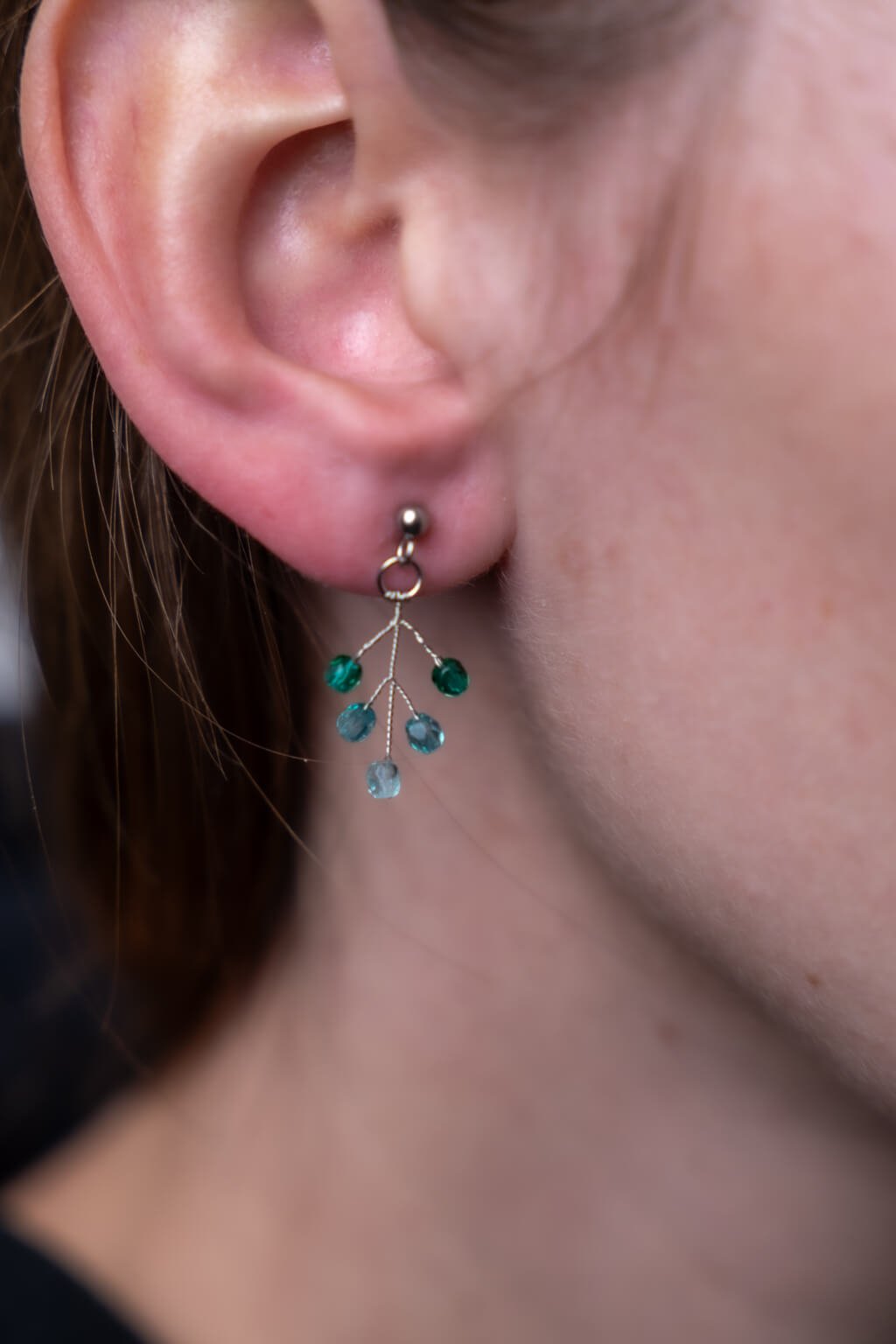 Náušničky vetvičky - zeleno-modré