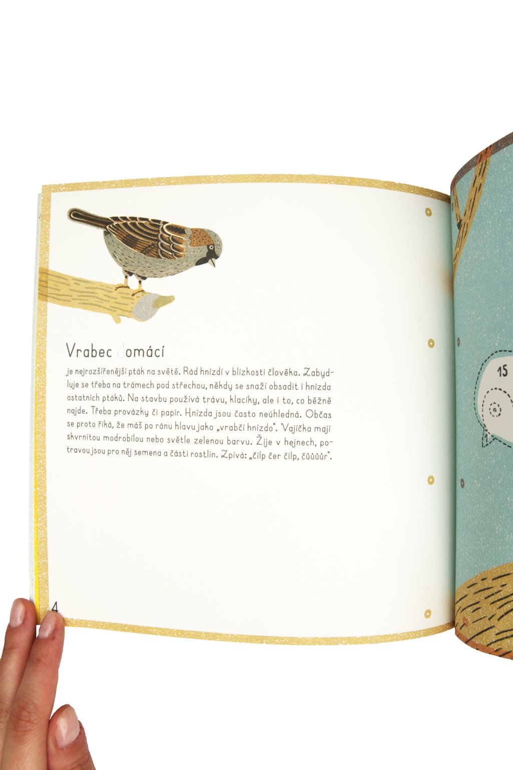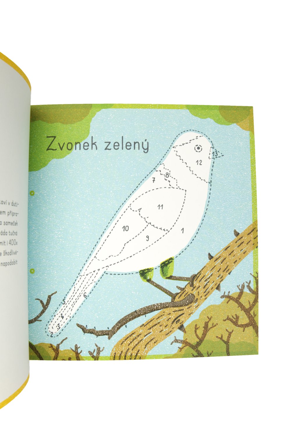 V brožúrke sú nielen stránky s kreslením, strihaním a lepením, ale aj 6 poznávacích kariet vtáčikov (sýkorka veľká, stehlík zelený, červienka obyčajná, vrabec domový, pinka obyčajná, lastovička obyčajná), ktoré si deti samy dotvoria a môžu z nich vytvoriť vlastnú malú knižku. Obrázkový návod na výrobu knižky nájdete na poslednej strane.