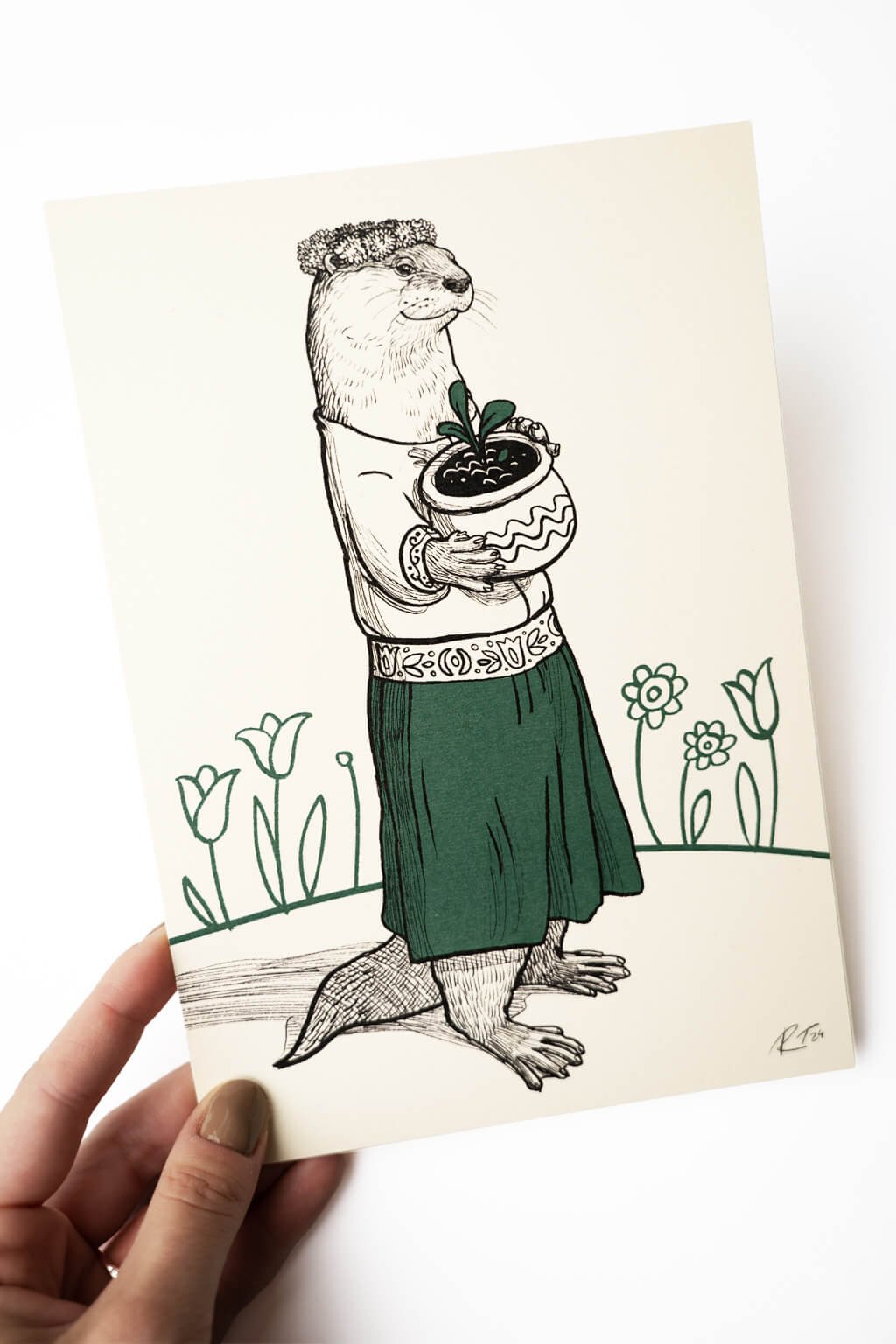 Roztomilá vydria záhradníčka so zeleným detailom. Obrázky od značky Z lásky k spomienkam sú ideálne pre didaktický rozvoj detí, ľahko zaujmú a podnietia túžbu bábätka objavovať a skúmať, a to už od dvoch týždňov veku. Medvedíkovité alebo vydrie obrázky vo formáte A5 môžete umiestniť do detskej izby alebo malého kútika vo vašej spálni, k postieľke či prebaľovaciemu pultu – jednoducho kamkoľvek, kde budú v dosahu pohľadu. Týmto spôsobom poskytnete vášmu bábätku optimálne podnety pre rozvoj zraku a inteligencie.