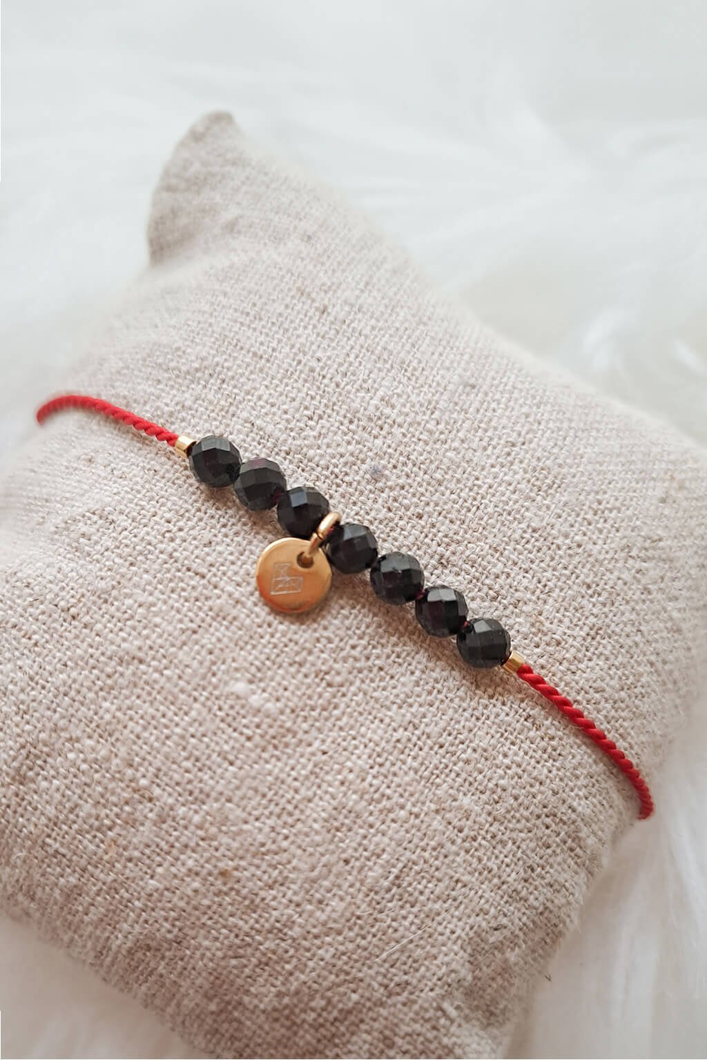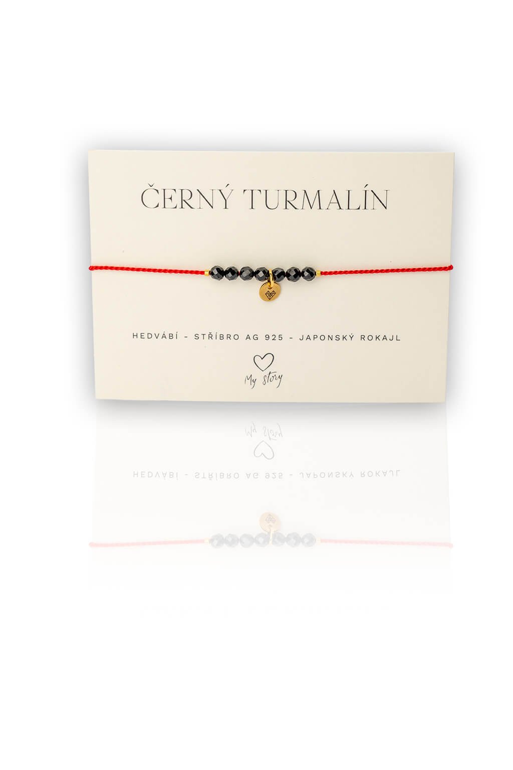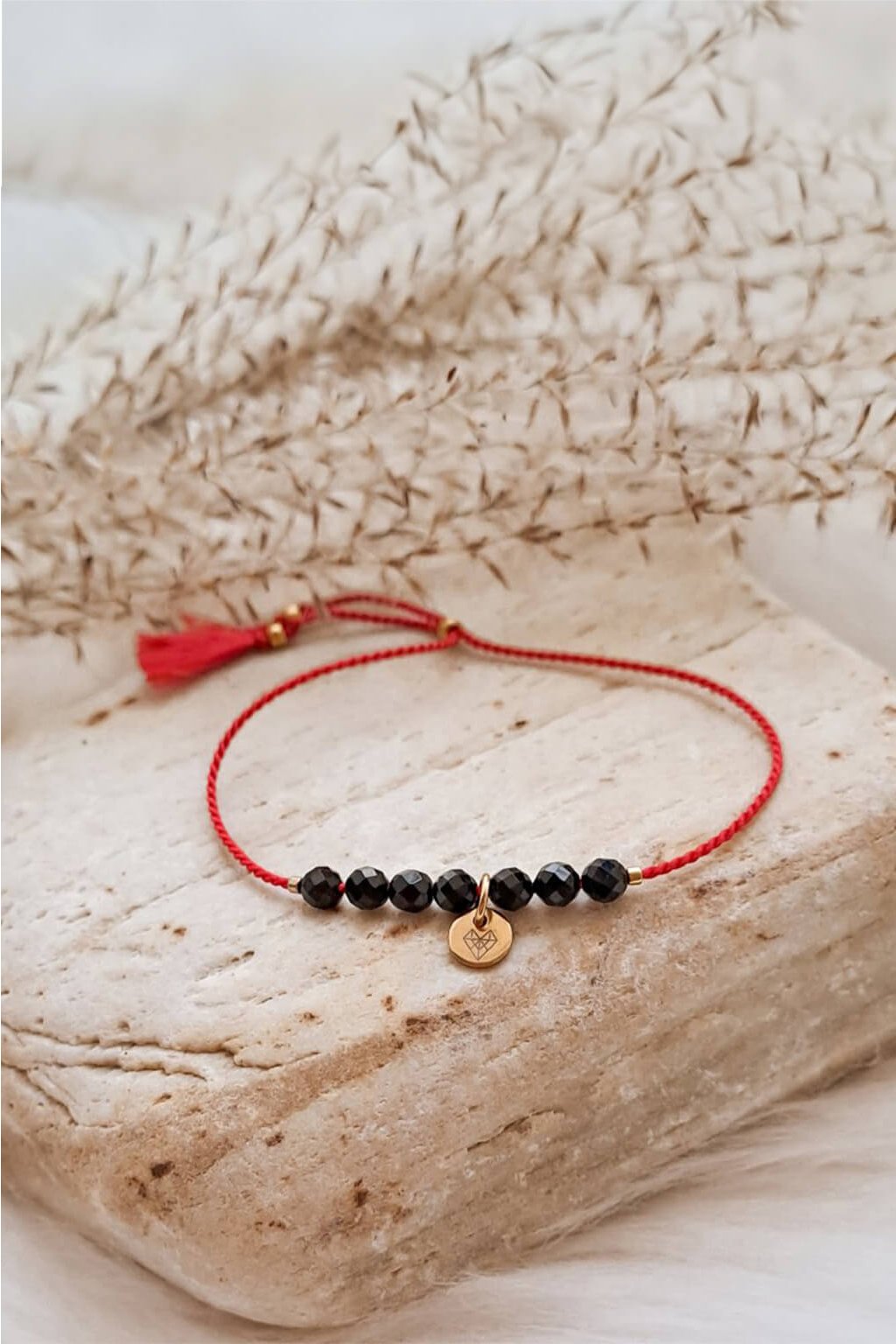 Ochranný náramok s Čiernym Turmalínom je výnimočný šperk, ktorý spája eleganciu s účinnou ochranou. Náramok obsahuje čierny turmalín, známy pre svoje ochranné vlastnosti, ozdobený pozlátenou plackou z chirurgickej ocele na červenej hodvábnej šnúrke.