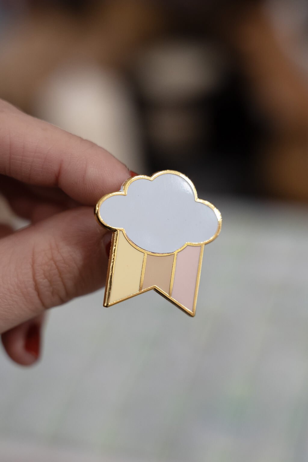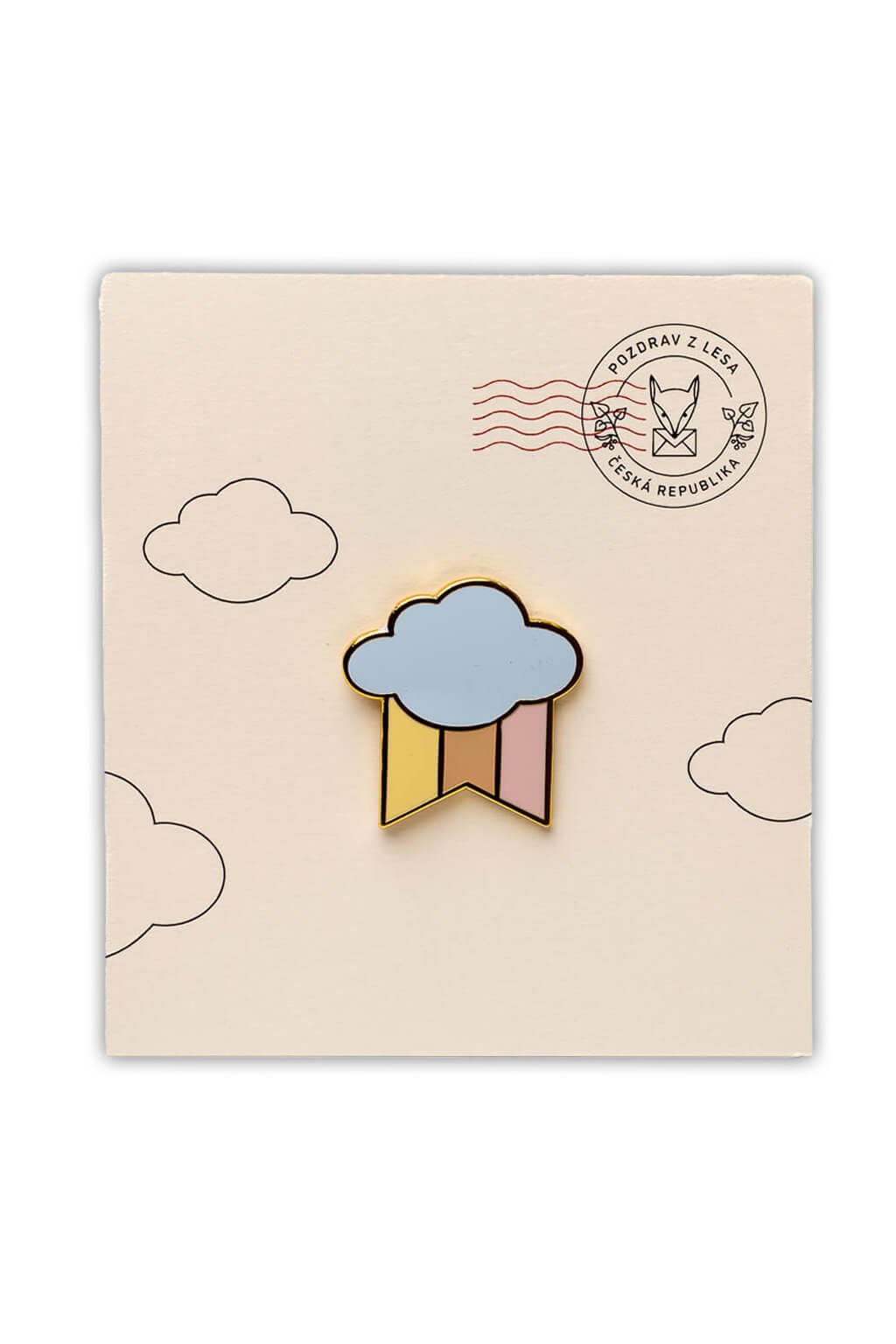 Odznak zo smaltovanej mosadze s oblakom a dúhou.