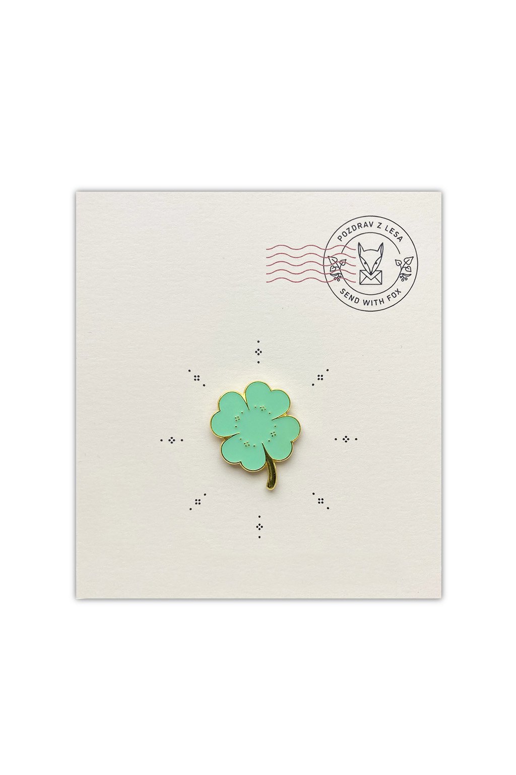 Mentolový odznak v tvare štvorlístka vyrobený zo smaltovanej mosadze dodá šťastie a rozjasní každý váš outfit.