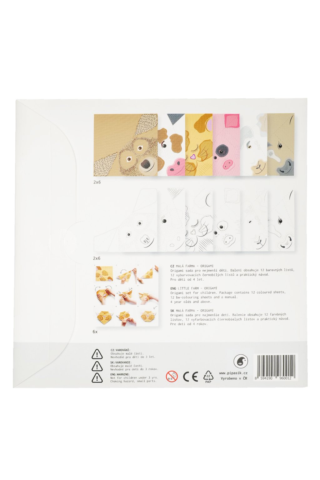 Autorská ORIGAMI sada štúdia Pipasik pre najmenšie deti. Balenie obsahuje 12 farebných listov, 12 vyfarbovacích čiernobielych listov a praktický návod.