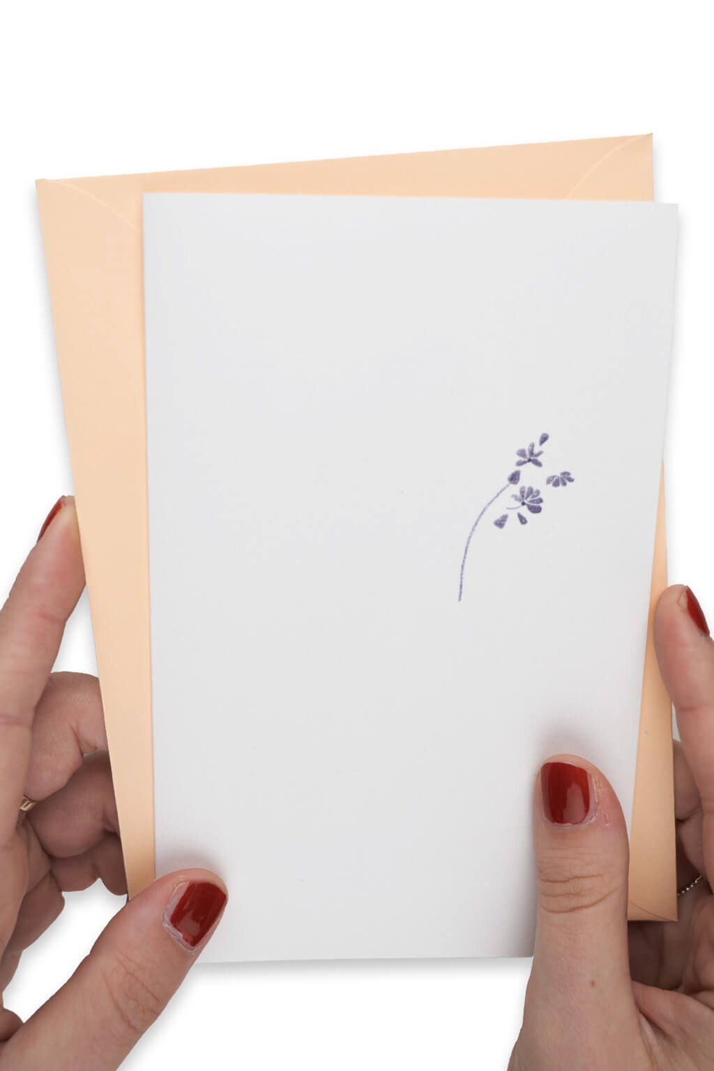 Rozmer priania je 108 x 170 mm a súčasťou je obálka lososovej farby.