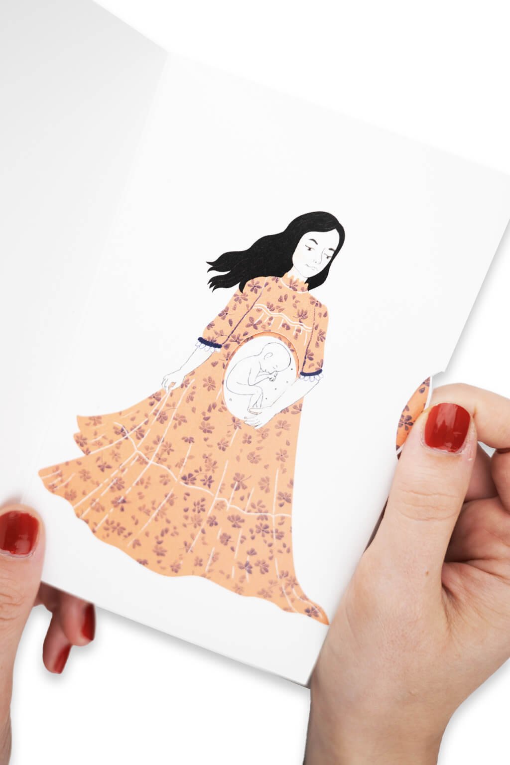 Originálne nežné oznámenie o tehotenstve s autorskou pohyblivou ilustráciou je ako malý záblesk radosti v živote. Blahoželanie je navrhnuté bez predtlačeného textu, ale s dvoma autorskými ilustráciami a dostatkom miesta pre vaše vlastné slová radostnej noviny.