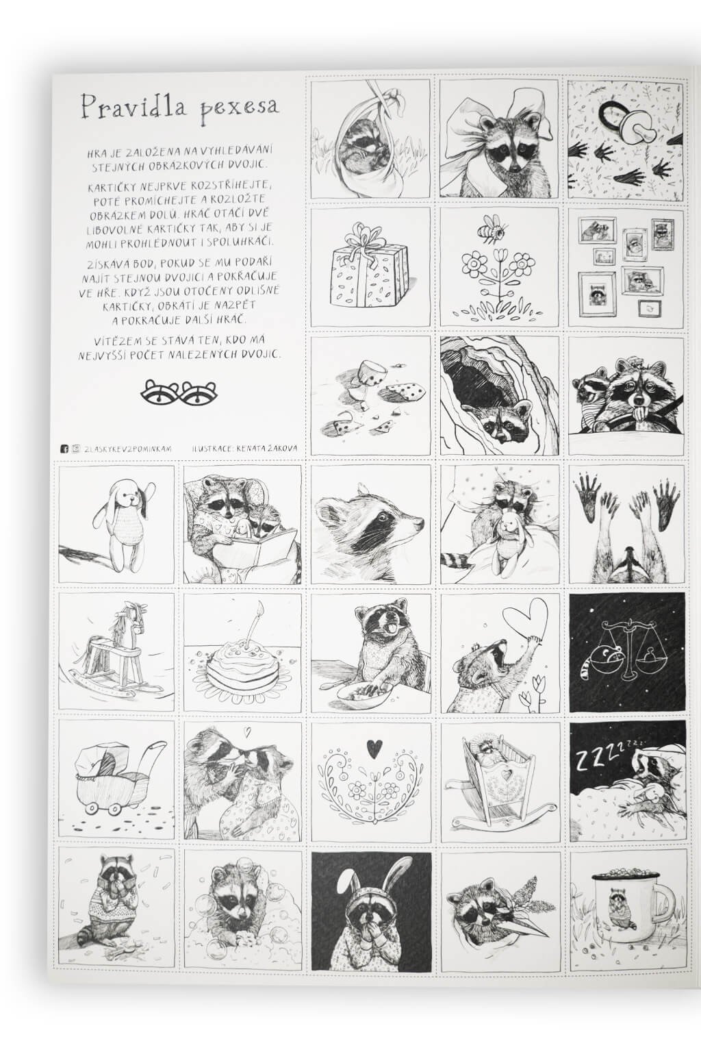 Ilustrátorka Renáta Tšponová sa postarala o premenu mývalov do podoby pexesa.