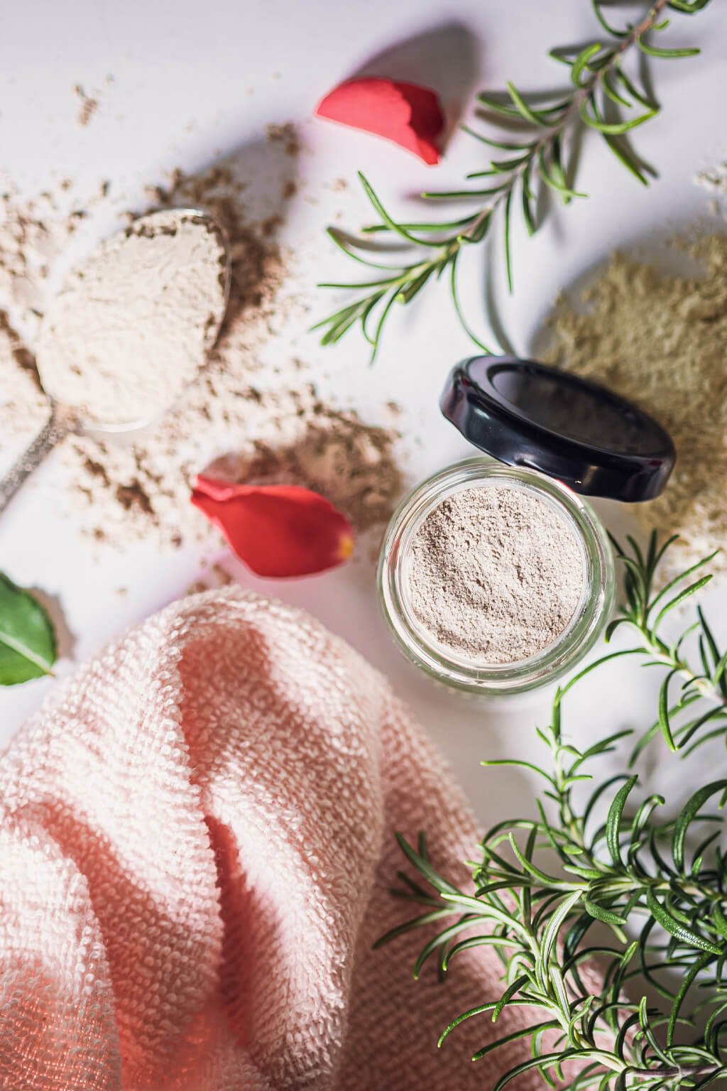 Prírodná prášková maska na tvár s peelingovým efektom.