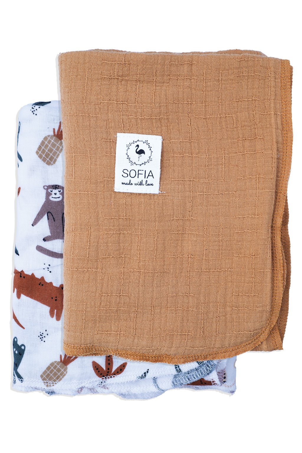 Mušelínová plienka od značky Sofia Baby je tým pravým riešením pre vaše bábätko, či už ste doma alebo na prechádzke v kočíku. Táto plienka je skvost! Aj keď je navrhnutá ako mušelínová plienka do postieľky, môžete ju ľahko použiť aj ako prikrývku do kočíka.
