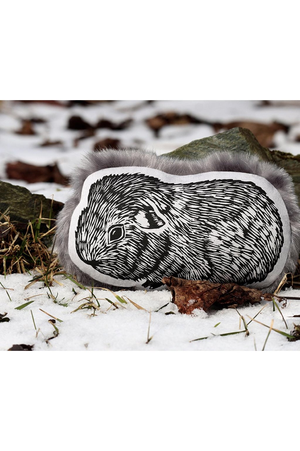 Morčiatko je chlpatý hebký ňufák. Z prednej strany je autorský linoryt ručne natlačený sieťotlačou a z druhej plyš pripomínajúci jemnú srsť morčaťa.