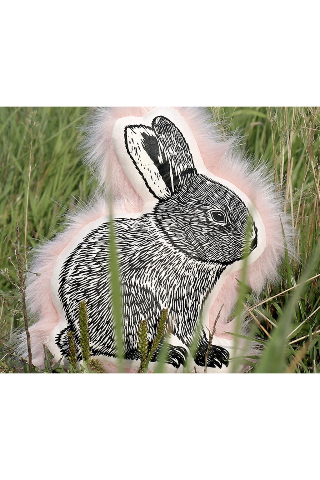 Zajačik Rozcuchánek je hebký dlhosrstý plyšáčik. Z prednej strany je autorský linoryt ručne natlačený sieťotlačou a z druhej plyš pripomínajúci jemnú zajačiu srsť.
