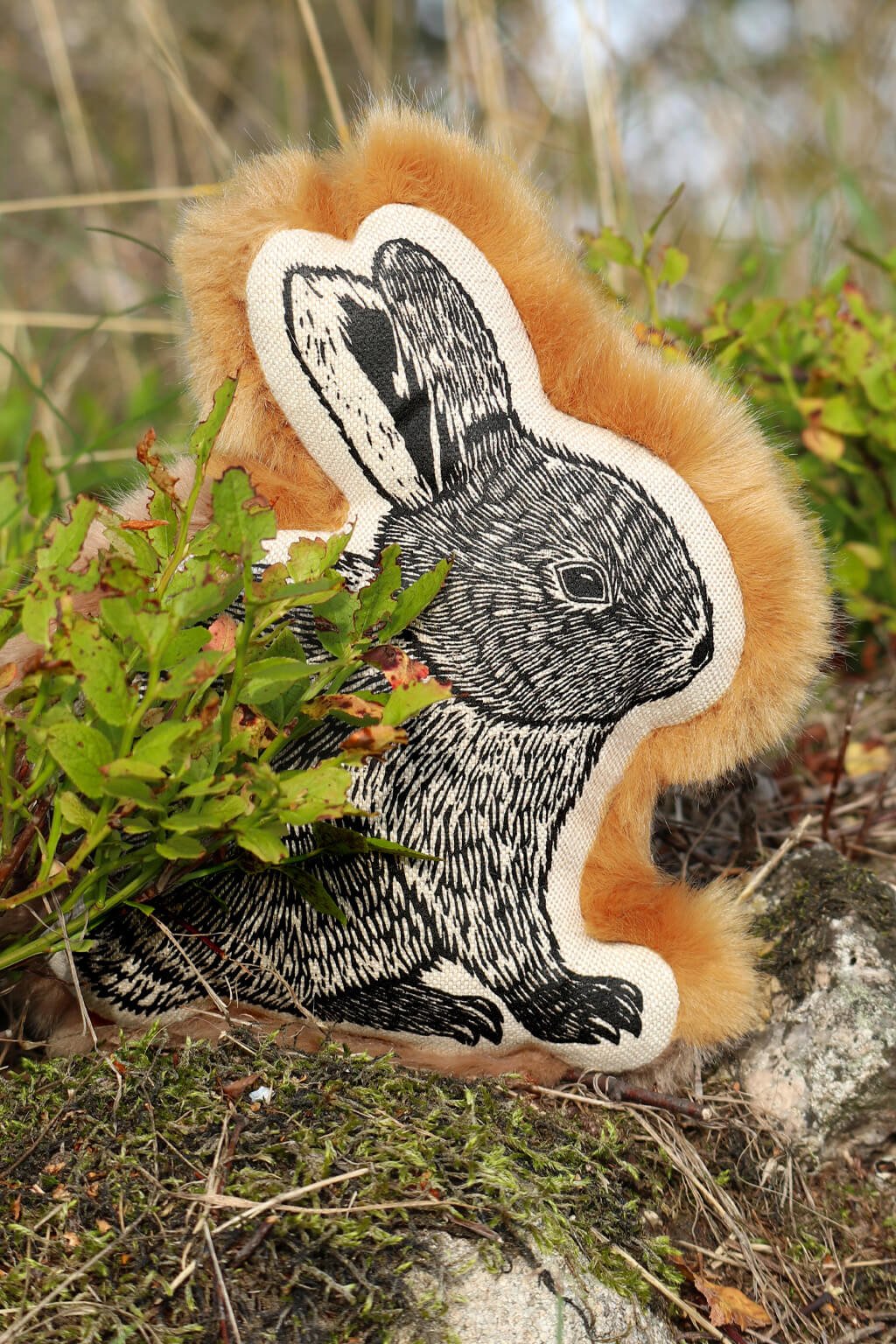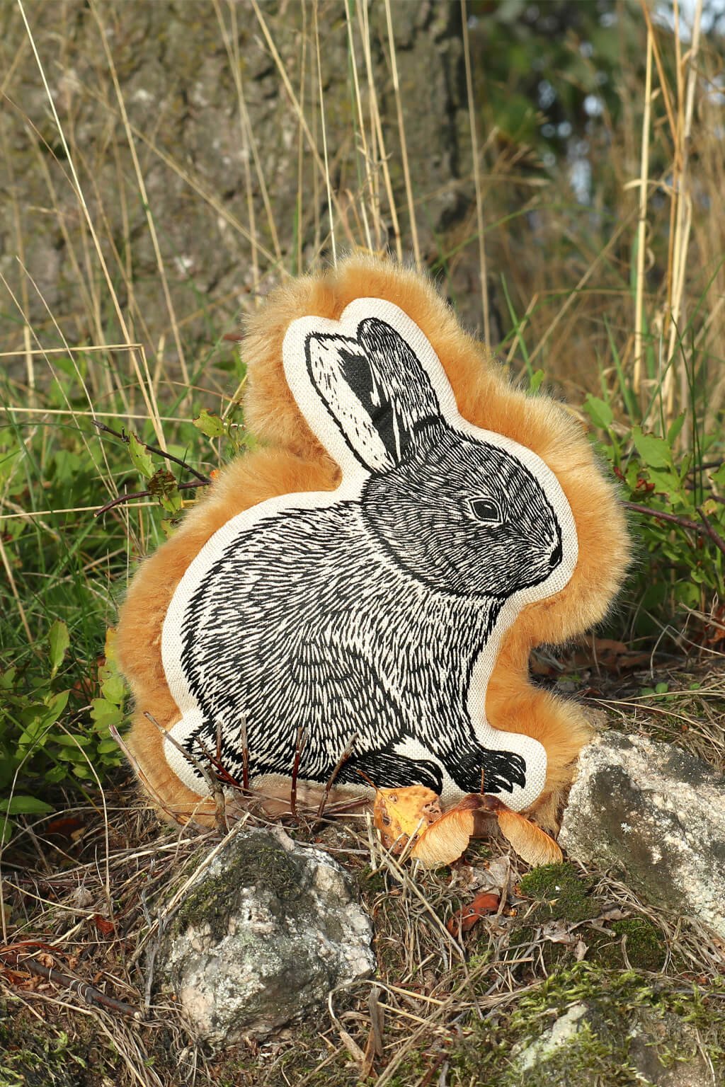 Jeho predná strana je zdobená autorským linorytom, ručne natišteným sieťotlačou, čo každému kúsku dáva jedinečný a čarovný vzhľad, zatiaľ čo zadná strana je pokrytá hebkým plyšom, ktorý pripomína jemnú srsť skutočného zajačika.