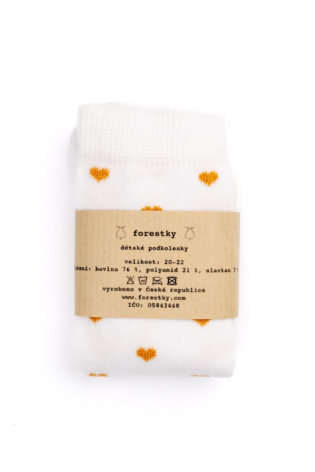 Tieto podkolienky sú nielen roztomilé, ale aj štýlové. Biela farba dodáva podkolienkam čistý a svieži vzhľad, zatiaľ čo žlté srdiečka prinášajú do dizajnu radosť a hravosť.