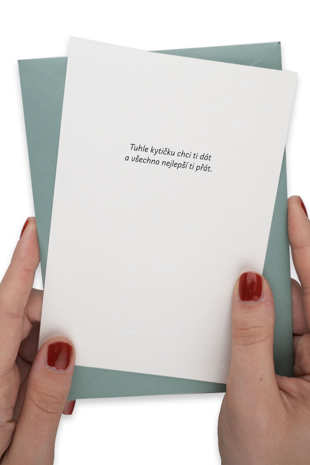 Na zadnej strane pohľadu je predtlačený text "Túto kytičku chcem ti dať a všetko najlepšie ti priať".