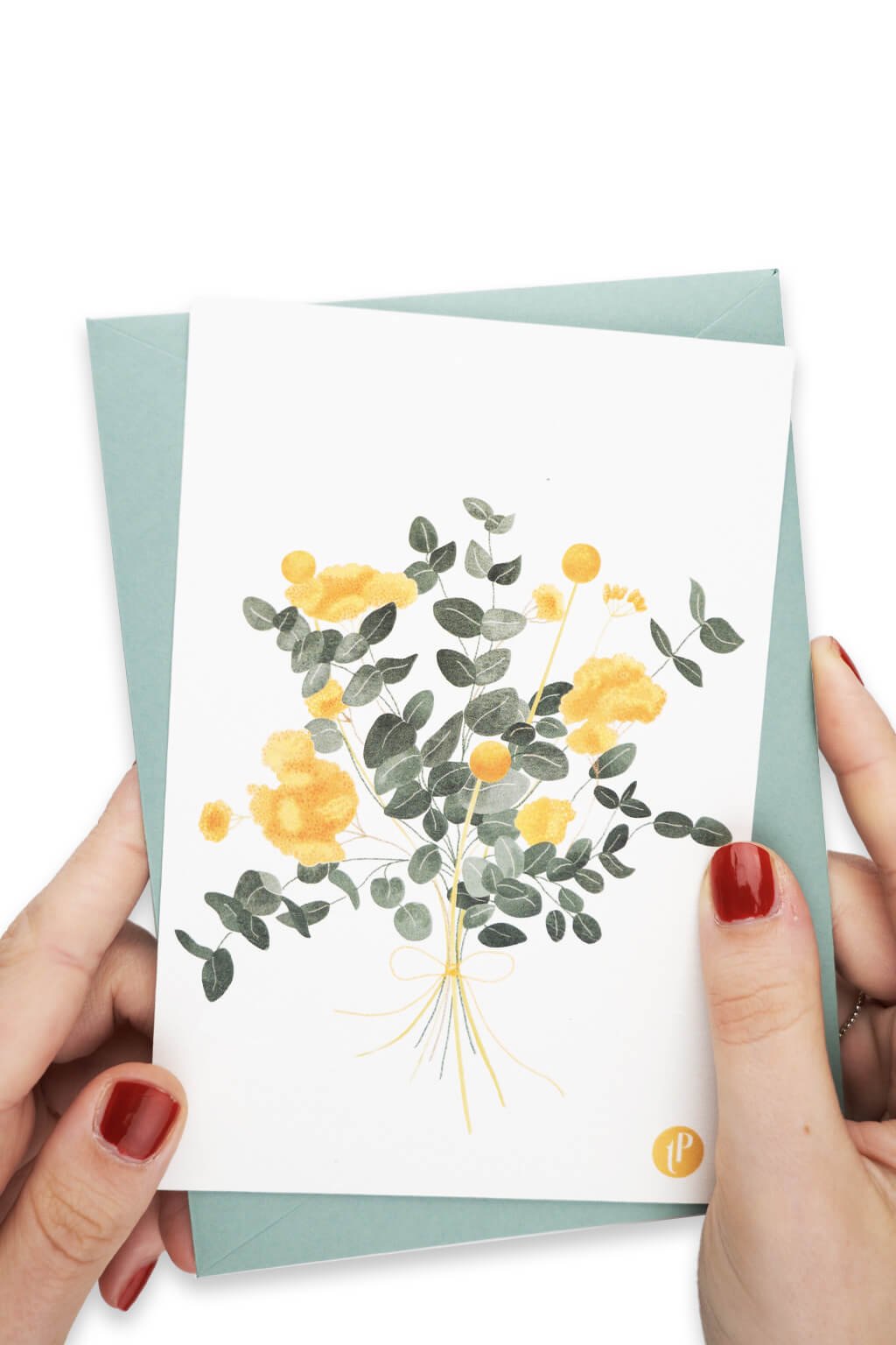 Nežný pohľad s autorskou ilustráciou žltej kytice.