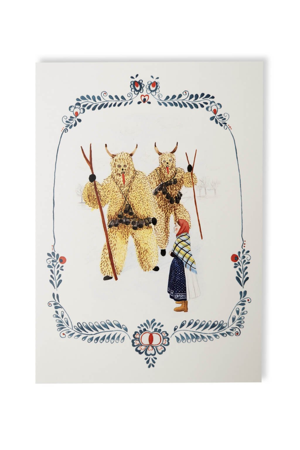 Originálna pohľadnica pre vaše vrúcne odkazy a pozdravy. Autorský obrázok tradičných čertov.