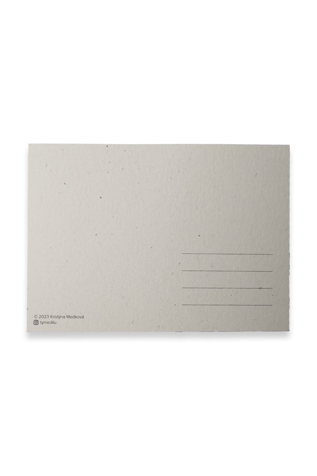Pohľadnica je z kvalitného struktúrovaného papiera vyššej gramáže a má jemnú prírodne krémovú farbu.