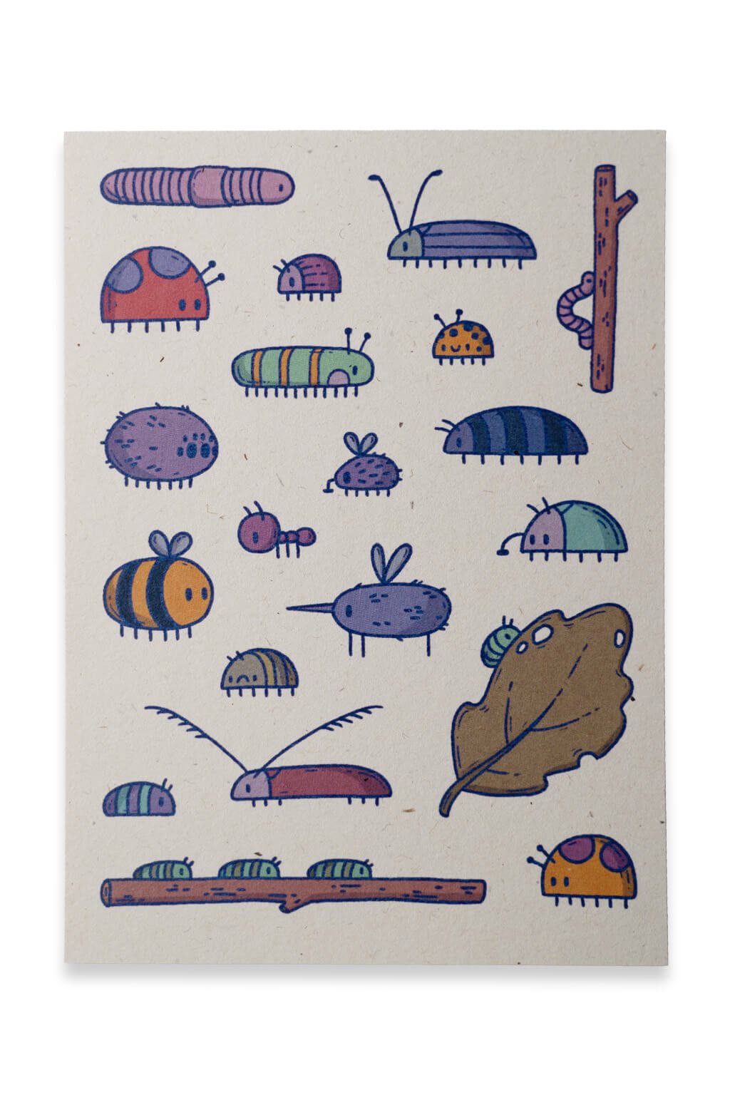 Potešte svojich blízkych veselou pohľadnicou s ilustráciami rôznych chrobáčikov. Na pohľadnici nájdete nielen včielku, lienku, dážďovku alebo píďalku. Ktorý z týchto malých tvorov z ríše hmyzu sa vám najviac zapáčil? :)