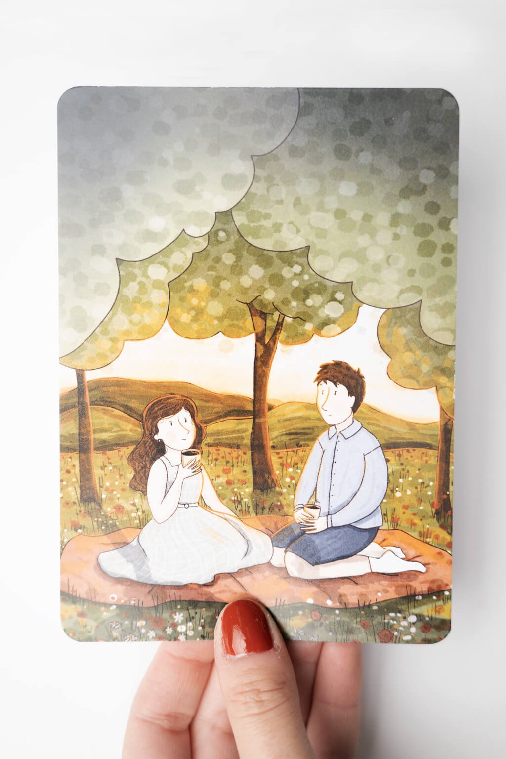 - Pohľadnica je vo formáte A6 (105 x 148 mm), čo je klasický formát pre pohľadnice, ideálny na zasielanie pozdravov, poďakovaní či jednoduchých odkazov. Je dostatočne malá na to, aby sa zmestila do každej schránky, a pritom dostatočne veľká na to, aby plne vynikla krása ilustrácie.