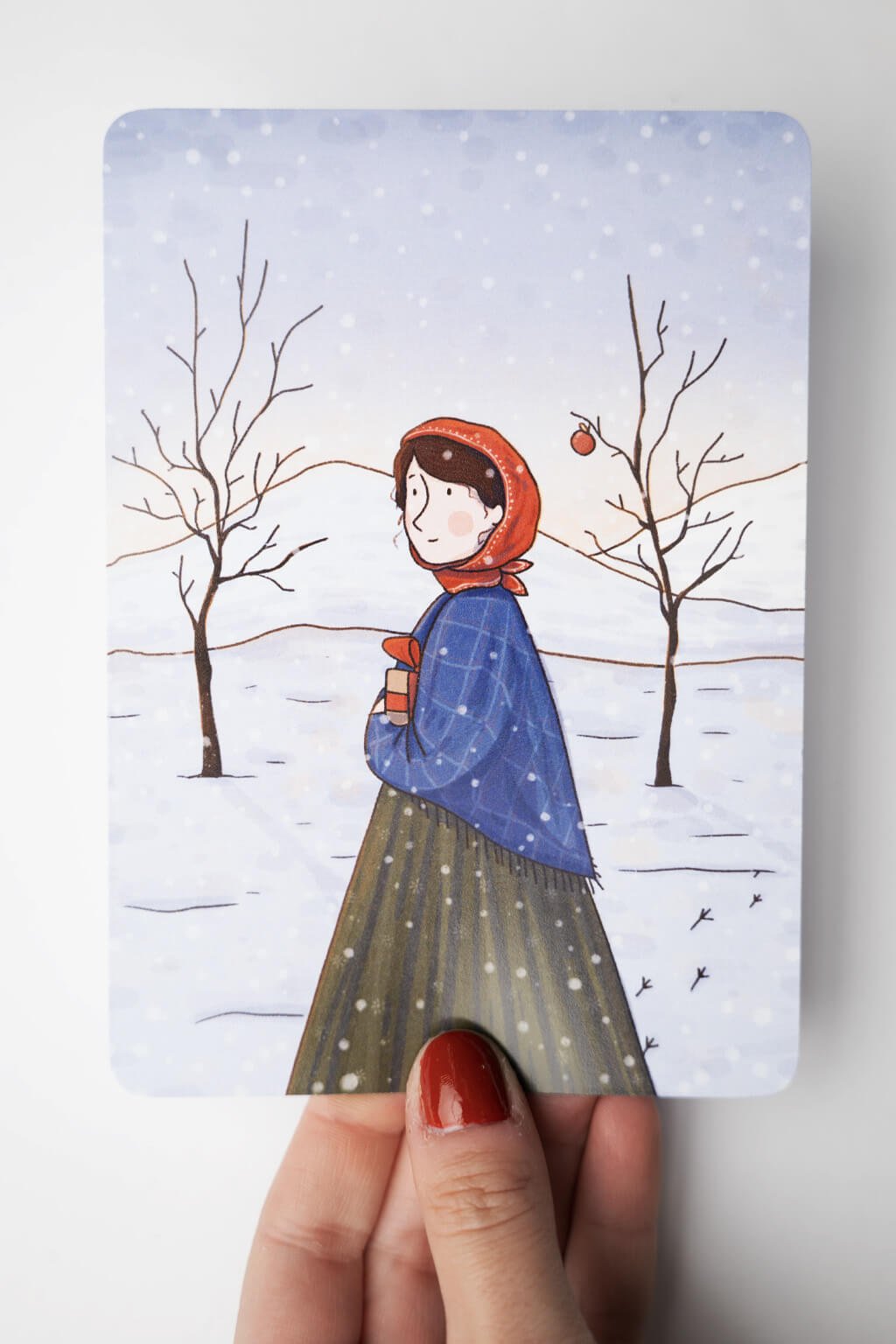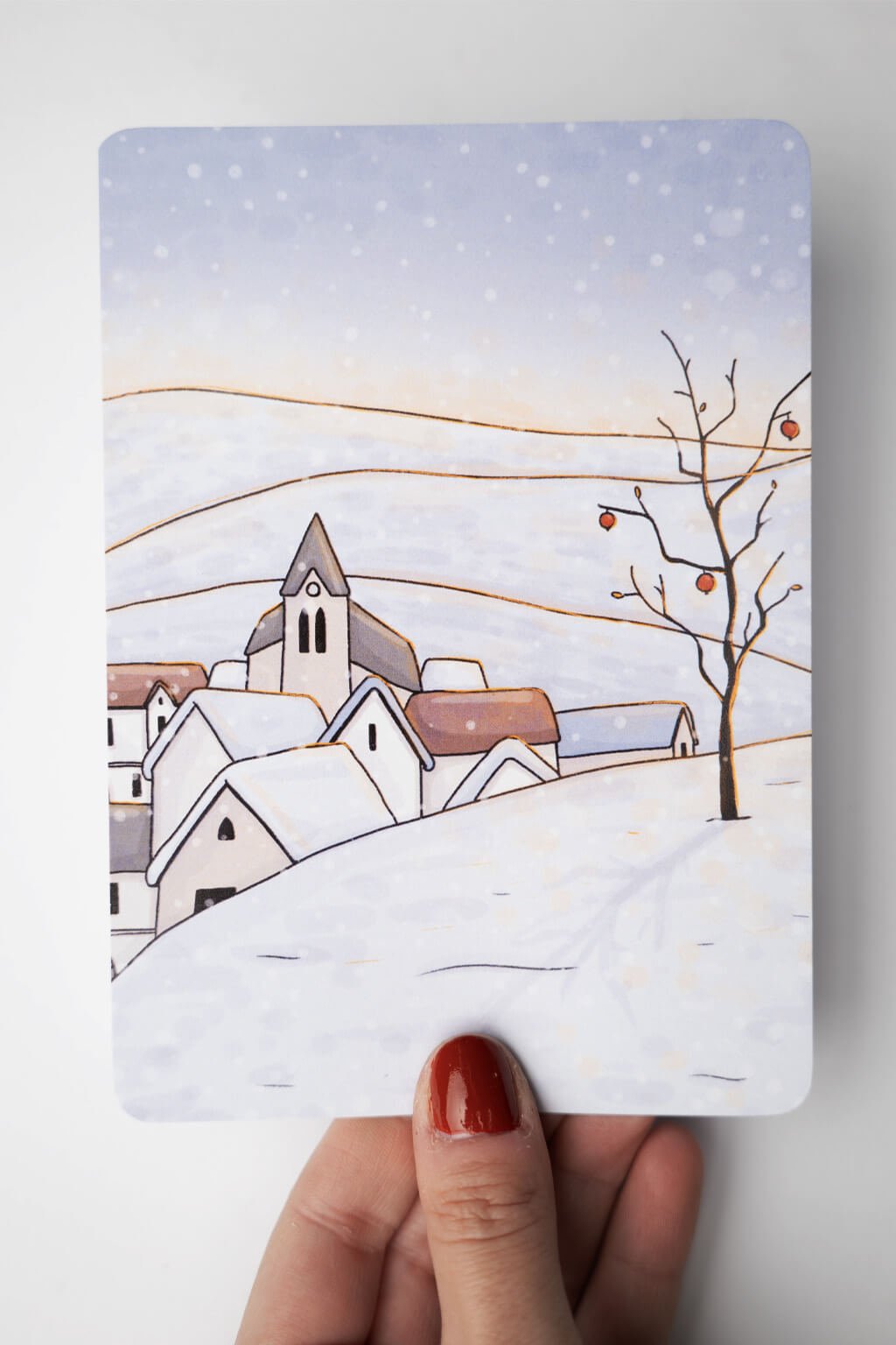 - Pohľadnica je vo formáte A6 (105 x 148 mm), čo je klasický formát pre pohľadnice, ideálny na zasielanie pozdravov, poďakovaní či jednoduchých odkazov. Je dostatočne malá na to, aby sa zmestila do každej schránky, a pritom dostatočne veľká na to, aby plne vynikla krása ilustrácie.