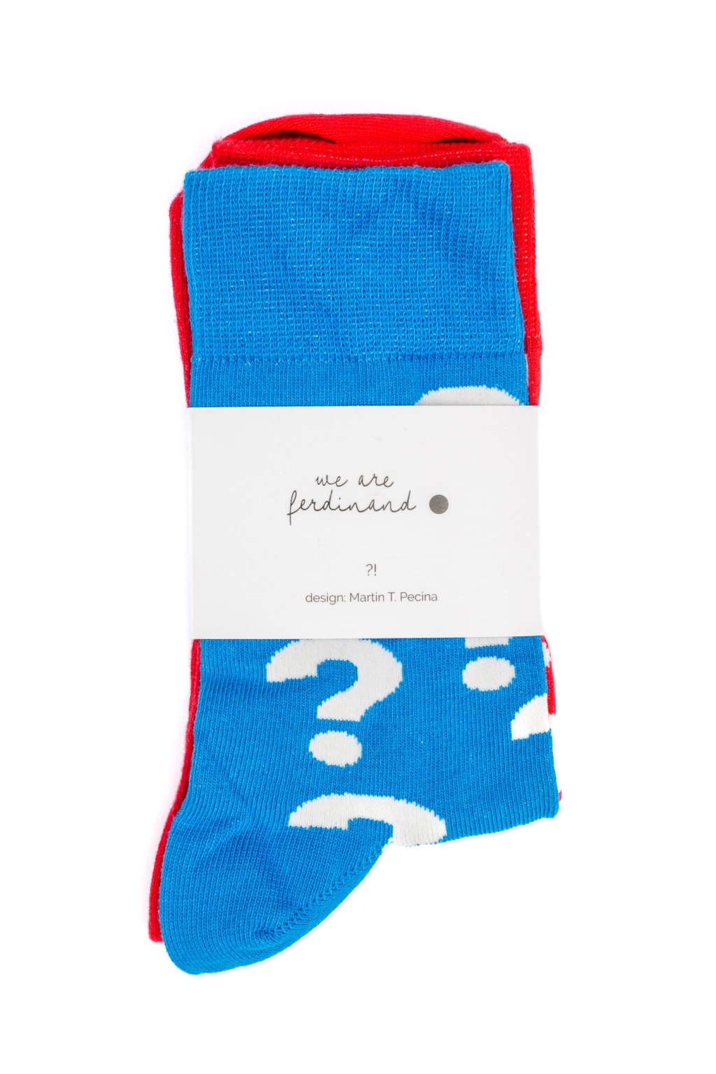 Dvojfarebné ponožky od značky Ferdinand sú skutočným vizuálnym lákadlom. Ich vzhľad navrhol Martin T. Pecina. Každý pár sa skladá z červenej ponožky s výraznými výkričníkmi a modrej ponožky s hravými otáznikmi. Tento kontrast farieb a symbolov prináša do každého kroku radosť a zvedavosť. Tieto ponožky sú dokonalou kombináciou štýlového dizajnu a originálneho výrazu.